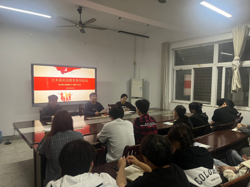 为充分做好学生管理工作,加强在校学生的纪法教育,4月29日晚,土木系学生管理办公室联合学生党支部开展每月纪法教育系列活动,针对第55期入党积极分子开展专题学习会议。本次会议的主要议题为学习修订后的《中国共产党纪律处分条例》(以下简称《条例》)。系学生党支部组织委员张瑶领学《条例》,2023年度省直机关优秀共青团员刘浩然作专题分享,会议由学生管理老师梅维朝主持。