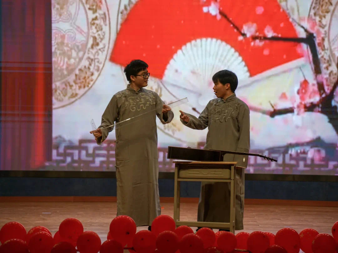 在串场表演中,系学生会文艺部表演了架子鼓双人合唱《逆战》,躁动的鼓点和嘶吼般的高音如狂风骤雨,让现场观众感受到属于新时代土木青年的意气风发。刘鑫炎、何华良两位同学的相声表演《欢乐音乐人》、周鸣涵同学的中国风江湖派说唱《沧海一声笑》、男团舞蹈《青苹果乐园》、女团舞蹈《爱情公寓》等精彩节目均赢得了满堂喝彩。