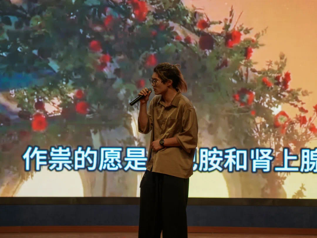 本次大赛历经初赛、复赛,共10名优秀选手登上决赛舞台,大赛特别邀请了缄默音乐创始人秦然,润尔文化首席声乐指导代安琪,中央音乐学院声乐展演优秀指导老师、鹿蜀音乐郭晓雅三位专业音乐从业者作为评委老师。晚上七点,伴着激昂热烈的架子鼓演奏,大赛在男团舞蹈《风吹一夏》、双人女舞《女帝》中正式开始,1号张艺耀同学一首经典励志歌曲《光辉岁月》惊艳开嗓,10名选手依次登台,或激情洋溢,或催人奋进,或宛转悠扬,或胸怀家国,以精湛的演唱技巧完美演绎了一首首有关青春、奋斗、圆梦等主题的曲目。