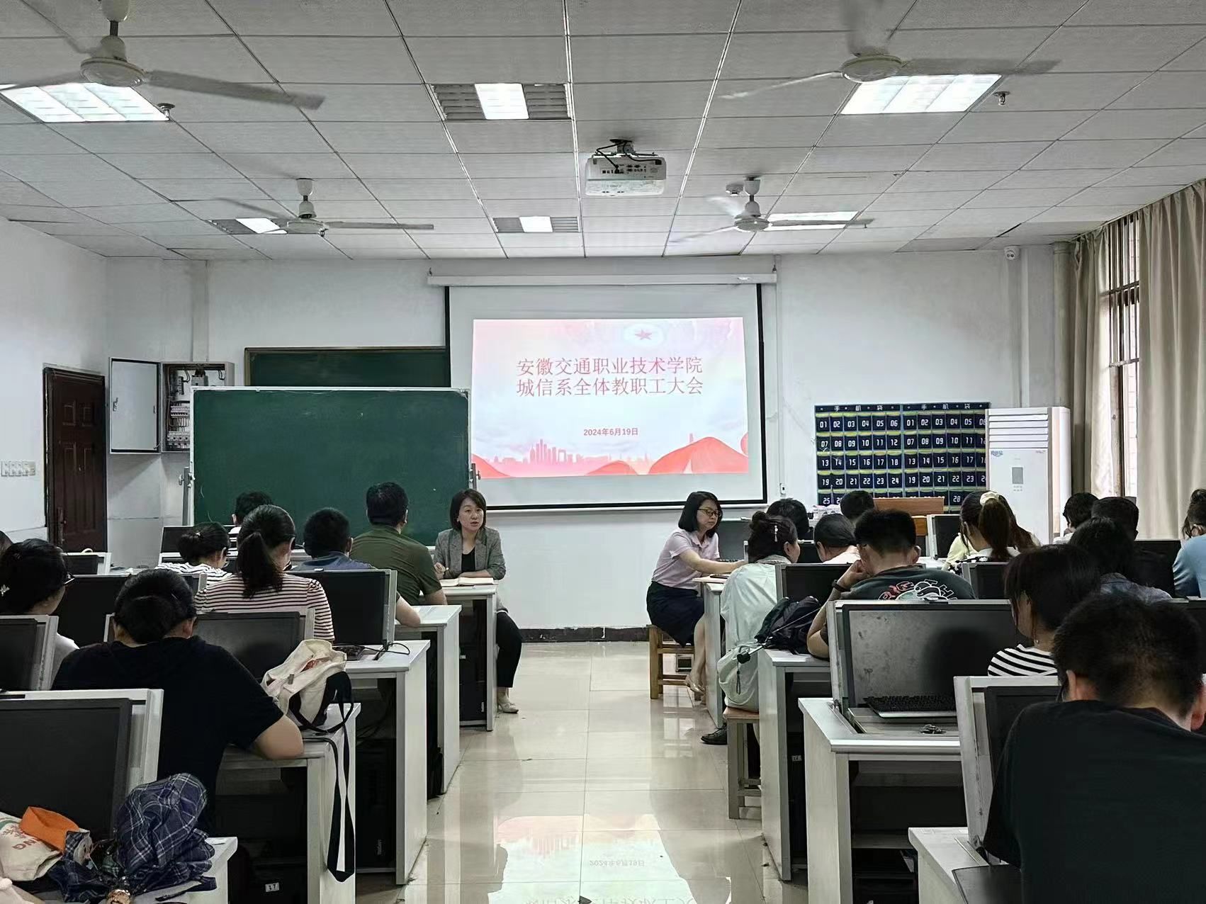 6月19日下午,城信系在信息楼202机房召开全体教职工大会。会议由系党总支书记汪倩主持,系领导班子和全体教职工参会。