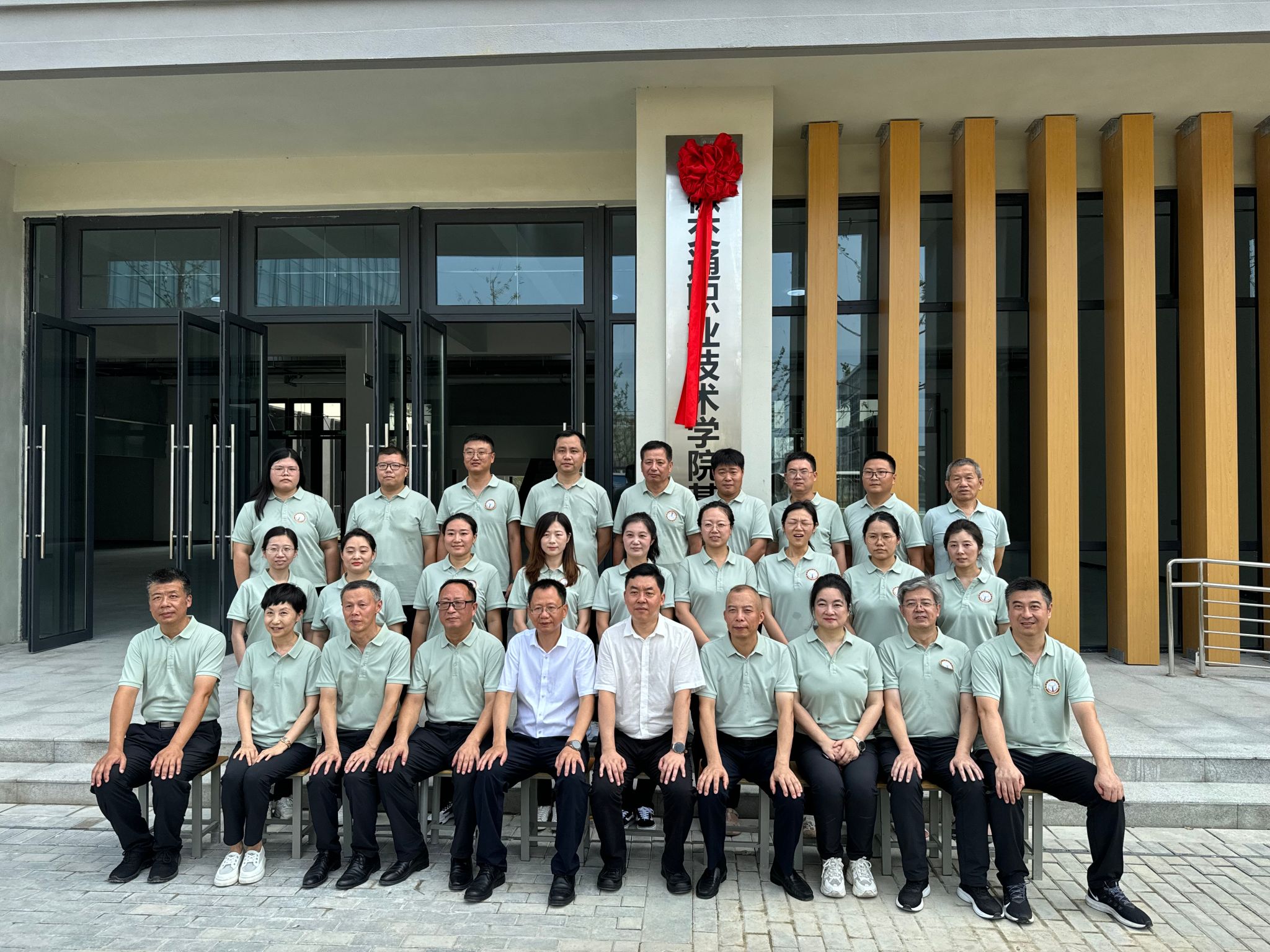 院党委委员、组织人事处处长龚桢和基础系党总支书记邵登泰共同拉动红绸,为基础系揭牌,随后院党委领导与全系教职工合影留念。