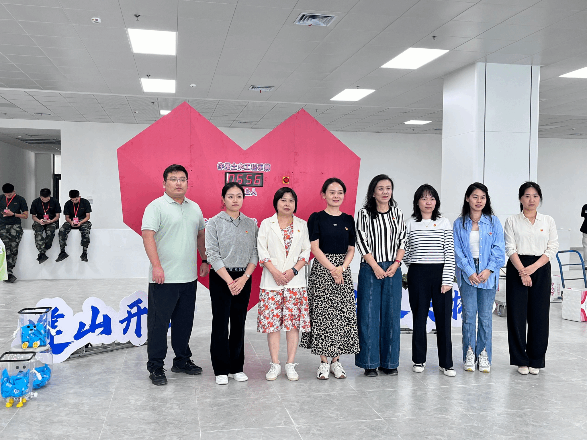 迎新当天,各位新生辅导员悉数来到现场,和志愿者们一起做好迎新接待工作,与24级新生进行师生“初接触”。院系领导也来到迎新现场,关心同学们的需求,解决遇到的困难。同时,在迎新现场,系部精心布置了爱心展板,上面印有“你是土木工程系第“几”位心上人?”的温馨话语,设置了打卡计数环节,让新生们在拍照留念的同时,感受到来自土木工程系大家庭的温暖与欢迎。
