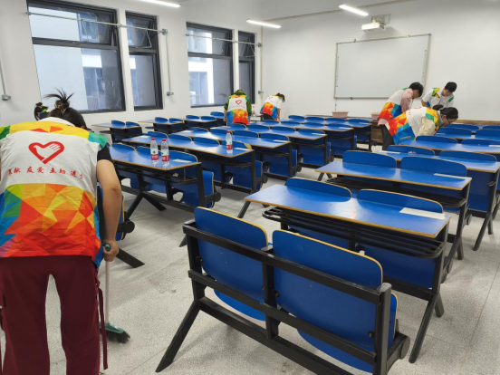 27号下午,志愿服务小队集合完毕,他们身穿志愿者马甲,手持清洁工具,精神焕发地开始了志愿服务。他们分工明确,有条不紊地进行教室清扫、清除垃圾,桌椅擦拭摆正。经过几个小时的辛勤劳动,赛区焕然一新,志愿者的汗水和微笑交织成了一道亮丽的风景线。在清洁过程中,同学们不仅学到了环保知识,也增强了团队协作能力。