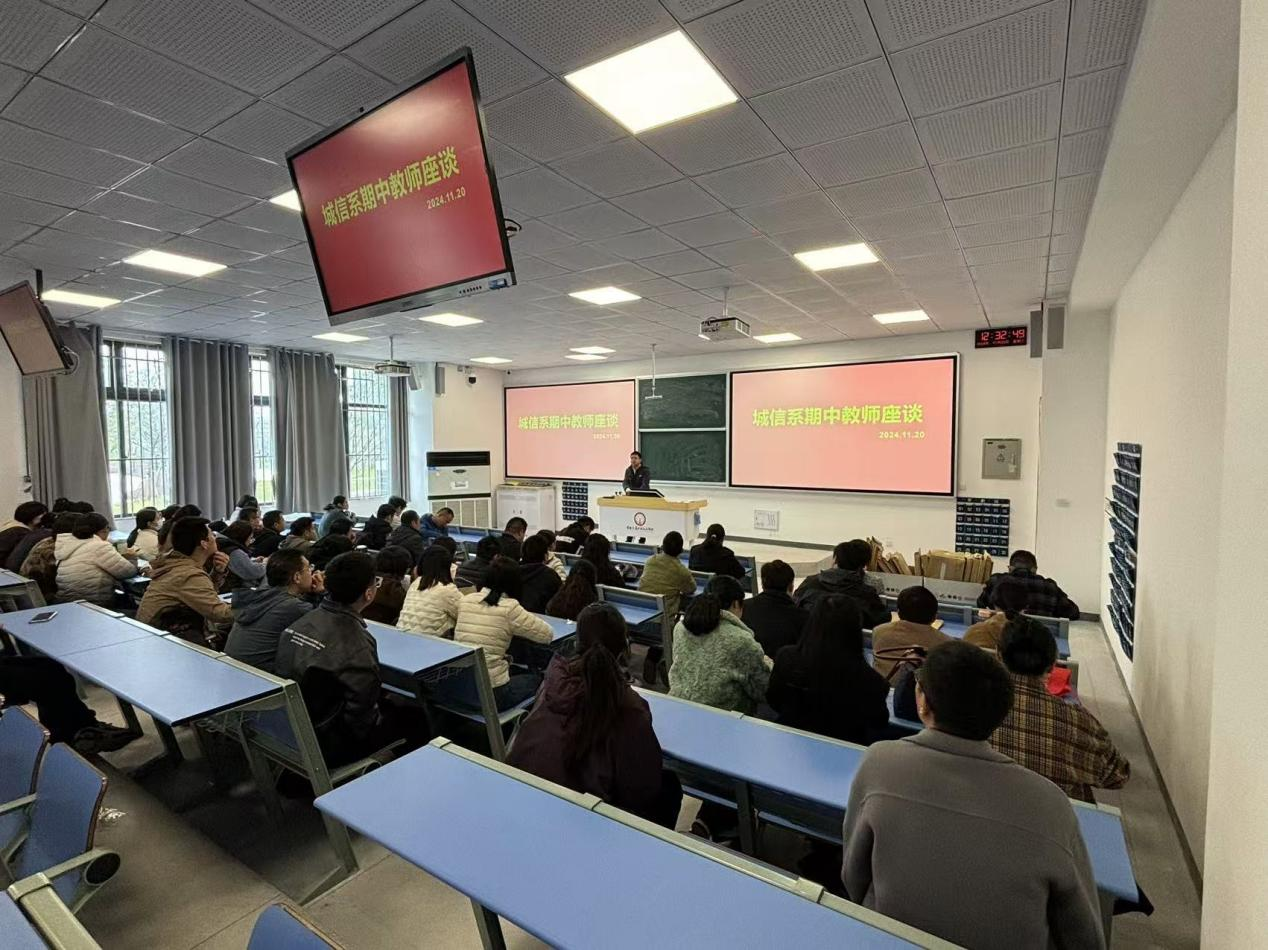 为全面加强系风学风建设,进一步提高教学质量,搭建师生交流平台,城信系于11月20日下午在崇德楼A101首先召开了期中教师座谈会。系副主任李志成、全系教师及2023级、2024级学生代表参加。会议由李志成主持。