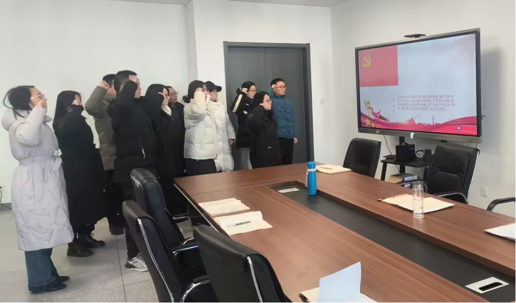 在庄严的党旗下,范雨洁、蔡玉洁、刘春阳三位预备党员同志紧握右拳,面向党旗郑重宣誓,表达了为共产主义事业奋斗终身的决心和信念。范雨洁同志作为新党员代表发言,她表示将牢记入党誓词,在今后的学习工作中,用更加严格的标准要求自己,不断强化理论学习,加强党性修养,努力进入到为人民服务的队伍中。陶琪在宣誓仪式上强调了党员的责任与使命,勉励新党员要时刻铭记入党誓词,践行党的宗旨,发挥先锋模范作用。