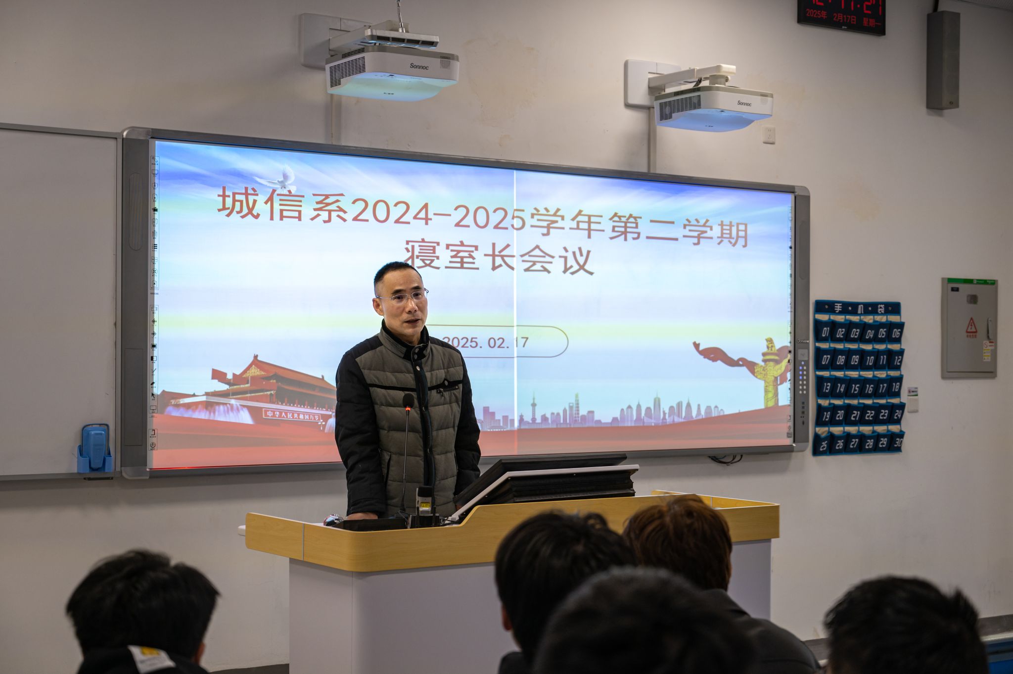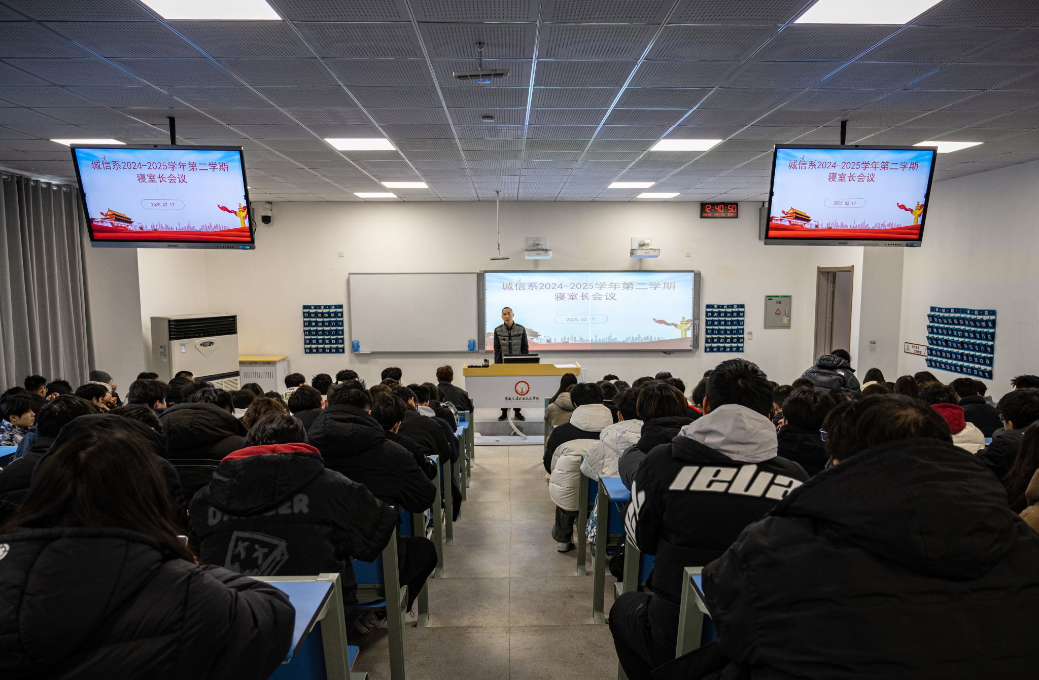 为深化寝室安全管理,加强新学期寝室文化建设,城信系于2月17日在学院新桥校区崇德楼A104召开全系寝室长工作会议。会议由系党总支副书记承友明主持,系主任辅导员汪爱娥、学管老师赵丰年、学管老师王意萌及全系寝室长参加会议。