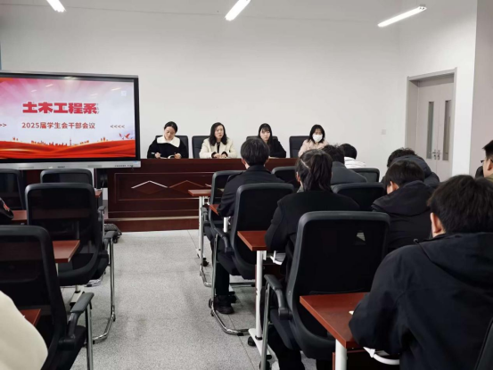 2月26日下午,土木系2025届团总支学生会干部会议在系会议室顺利举行。系党总支副书记朱蓉,部分学管老师以及新一届学生会全体成员参加了会议,团总支管理老师武庆媛主持了会议。
