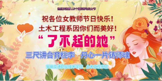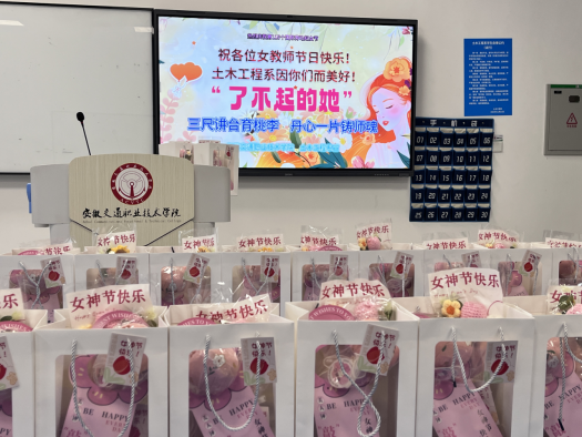 为庆祝第115个“三八”国际劳动妇女节,弘扬新时代女性风采,3月6日至8日期间,土木系团总支开展了“了不起的她”主题庆祝活动,向全系女教职工和女大学生致以节日的问候和崇高的敬意,并送上精心准备的小礼物。
