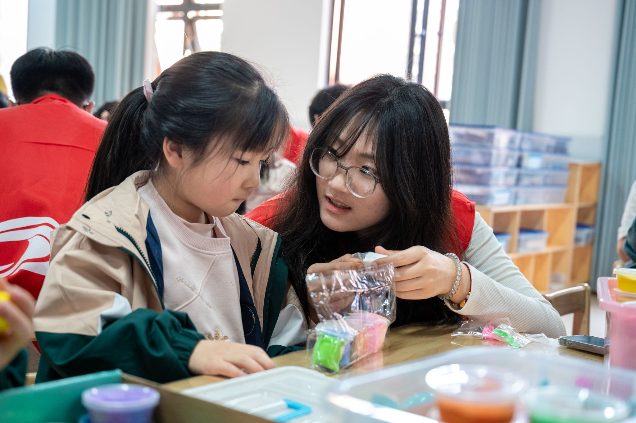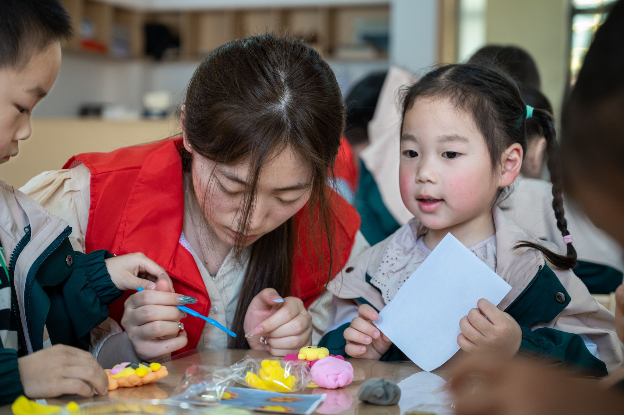 随后,志愿者们还组织了手工制作活动,孩子们用橡皮泥和超轻粘土等材料制作了可爱的手工艺品,展现了他们的创造力和想象力。