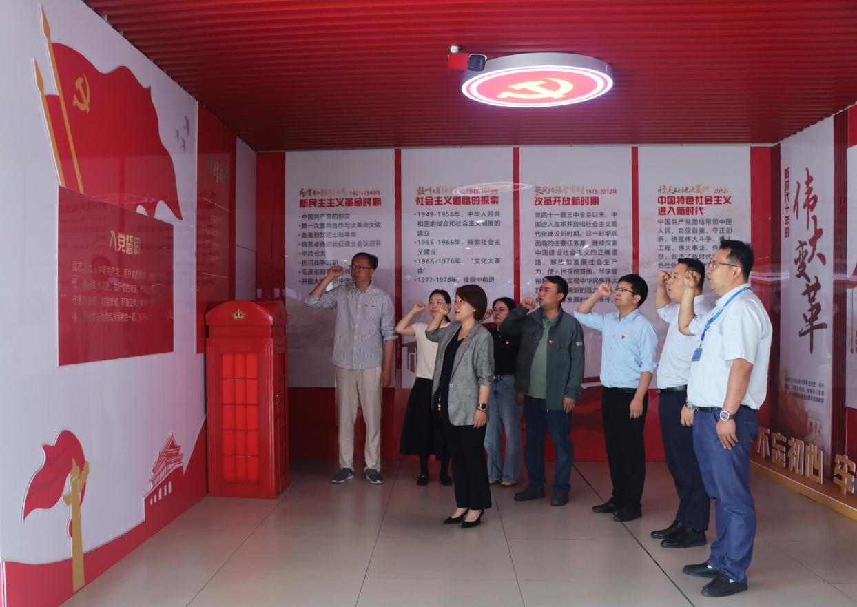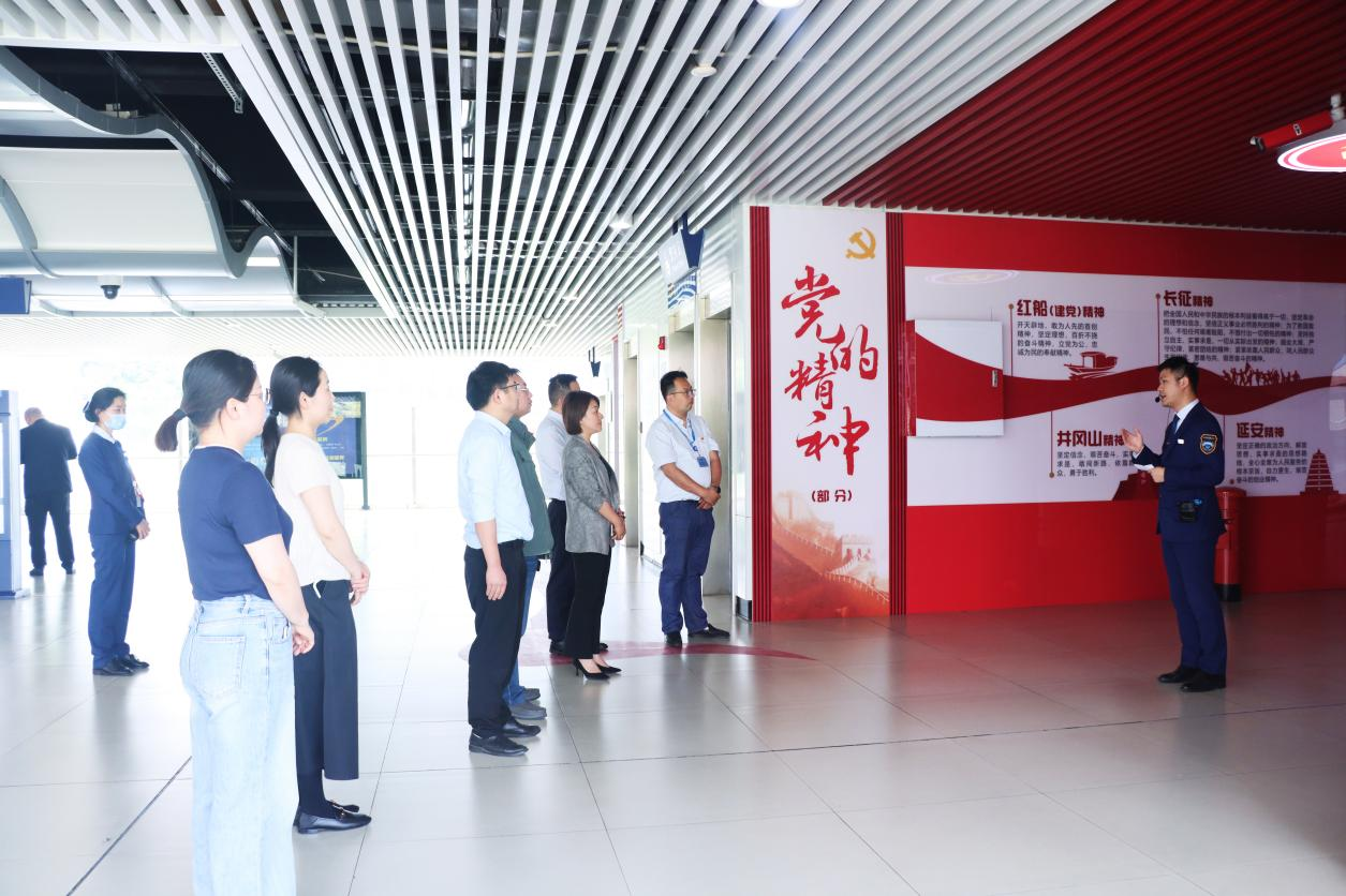 在热烈的氛围中,城信系党总支、芜湖市运达轨道交通建设运营有限公司第一党支部签订党建结对共建协议,推动校企双方强化党建共建,引领校企深度融合。会后,全体与会人员前往芜湖运达轨道交通政务中心站,参观车站党建文化长廊,接受红色教育。汪倩带领全体党员重温入党誓词,进一步坚定理想信念。