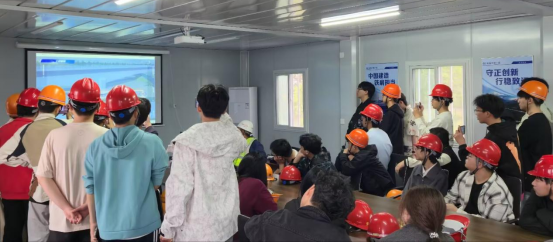 项目俞孟良工程师分别在现场和会议室为同学们讲解跨宁西铁路转体桥梁的施工工艺、流程和技术控制的重难点,对同学提出的问题进行详细解答。