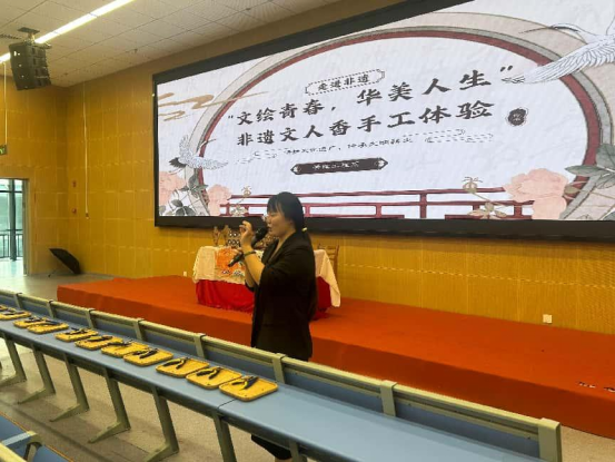 活动现场展示了一系列精美的文人香制品,包括造型别致的香牌、古朴典雅的香炉、精致的香珠耳饰、手串、制作精美的手工香囊、寓意与功效集聚的香梳等,让同学们感受到非遗传承人的匠心独具,让非遗“香”文化在新时代焕发了新的光彩。