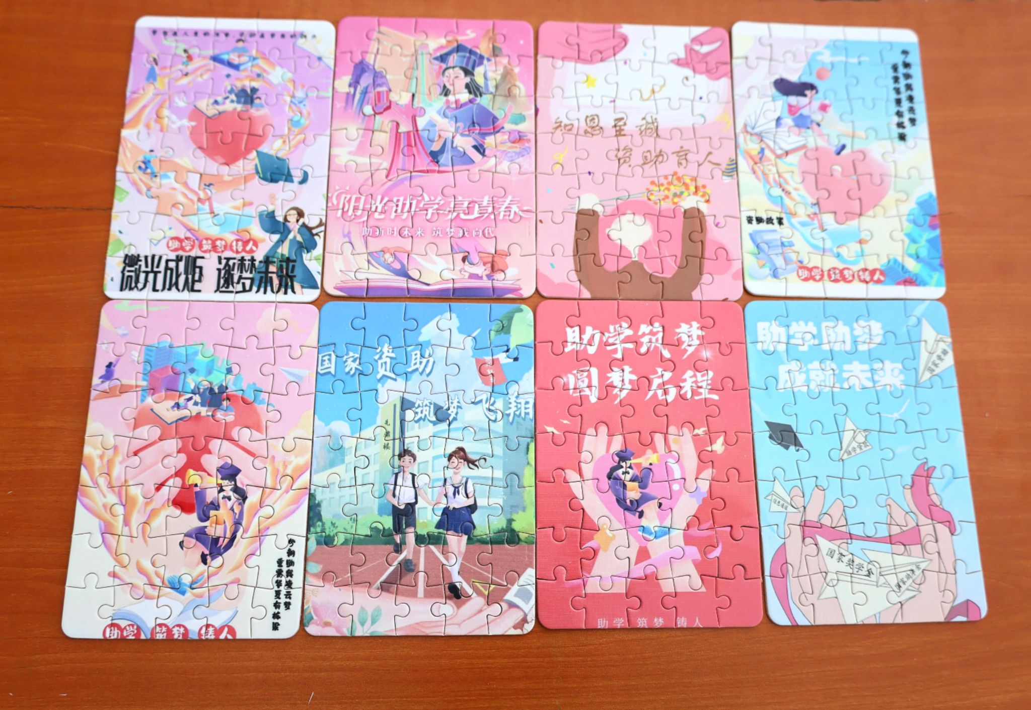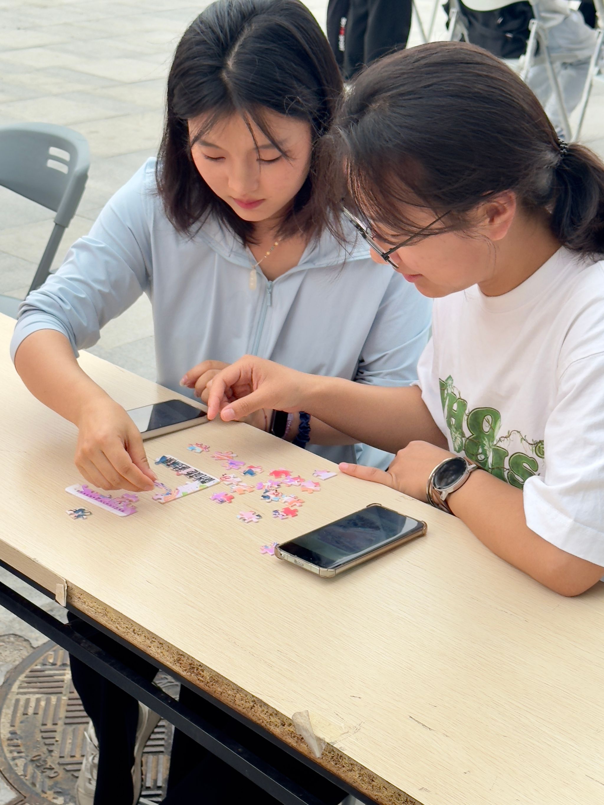 在"诚拼争辉"的赛场上,八组拼图散落在原木色的长桌上,如同等待破译的诚信密码本。每幅拼图都勾勒出“助学筑梦”的主题,传递了“城信感恩担当,资助助人向上”的精神。同学们与搭档屏息凝神,将碎片化图块嵌入正确位置,当最后一块拼图落定,志愿者递来的问题卡恰似拼图的隐形碎片——"国家开发银行助学贷款的宽限期为几年?"“如何办理助学贷款的还款手续”“申请助学贷款需要满足哪些条件”在指尖与思维的双重舞动中,她们最终完成了"诚信语法"的重构。