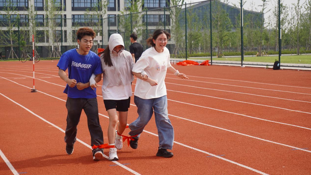 趣味项目轮番上阵,点燃青春热情。“珠行万里”中,同学们全神贯注传递小球,球槽衔接处不时出现小球滑落的“小插曲”,引发阵阵笑声;“正对反做”挑战大脑反应,有人因动作失误闹出笑话,现场欢乐不断。经典的“两人三足”比赛,搭档们喊着口号、步伐一致奋力冲刺;“企鹅漫步”项目里,同学们夹球憨态行走,滑稽模样引得喝彩连连。
