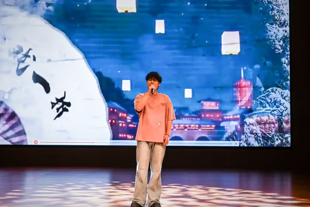 大赛邀请到了三位院系声乐专业背景的教师——李侠、吴嘉玥、张慧敏老师担任评委。晚上6点10分,随着大学生艺术团乐队一曲充满活力的《我们的时光》震撼开场,大赛正式开启帷幕。1号选手胡杰以一曲《听海》惊艳亮相,瞬间点燃了现场氛围。随后,8名选手依次登台,凭借扎实的演唱功底,完美诠释了一首首涵盖青春、奋斗、圆梦以及传统文化等多元主题的曲目,为在场的每一位观众带来了一场视听盛宴。