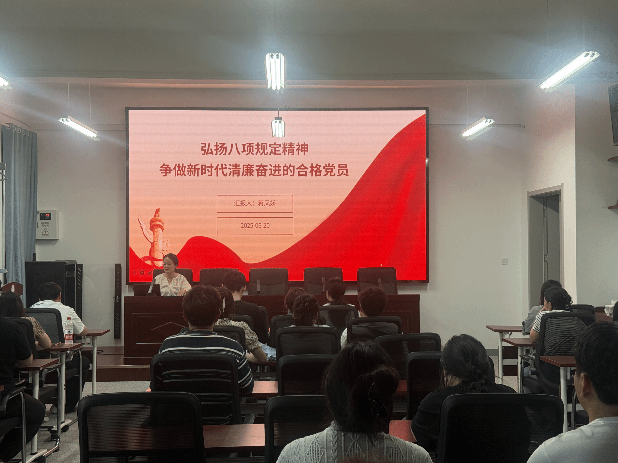 会议最后,蒋凤娇围绕《弘扬八项规定精神,争做新时代清廉奋进的合格党员》主题,为全体党员讲授了一堂生动的党课。