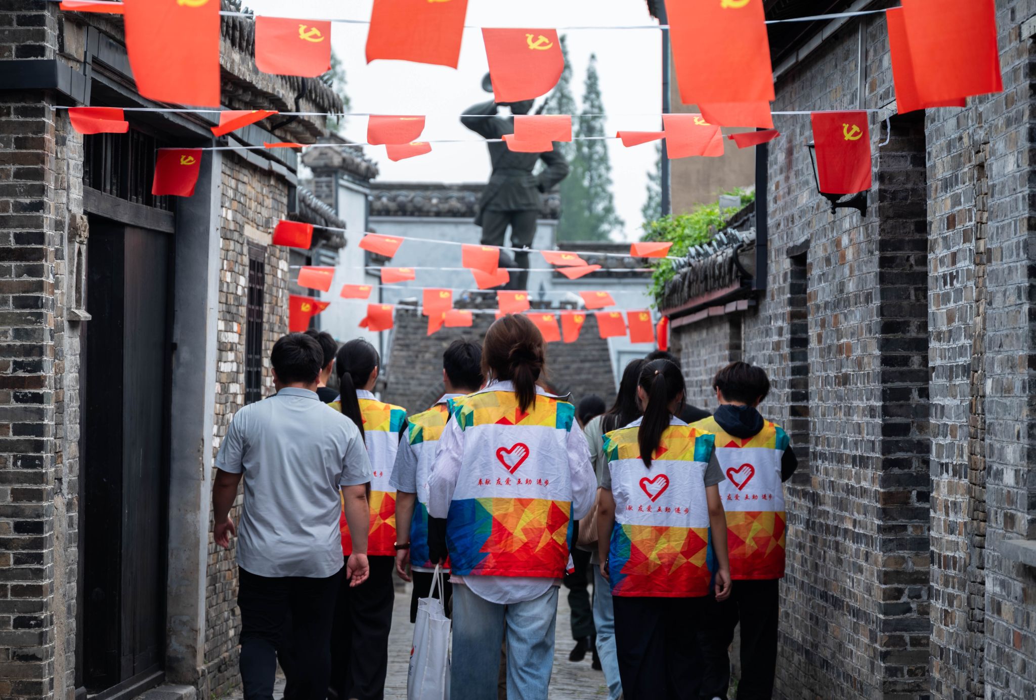 “民族要复兴,乡村必振兴;乡村要振兴,文化必先行。”在中国人民抗日战争暨世界反法西斯战争胜利80周年之际,为深入学习贯彻党的二十大精神和习近平总书记关于“用好红色资源”的重要指示,学校土木建筑学院“兴农人”社会实践团队在学院团总支负责人武庆媛和检测与养护教研室党支部委员武余波的带领下,于7月15至16日赴滁州天长市铜城镇国家历史文化名村龙岗,开展以“赓续红色文脉,赋能芡实兴农”为主题的暑期“三下乡”实践活动。团队紧扣“红色文化”与“特色产业”双主线,通过对话抗战老兵、探访红色旧址、深耕芡实产业,在红土地上书写青春答卷,让红色精神与振兴实践同频共振。