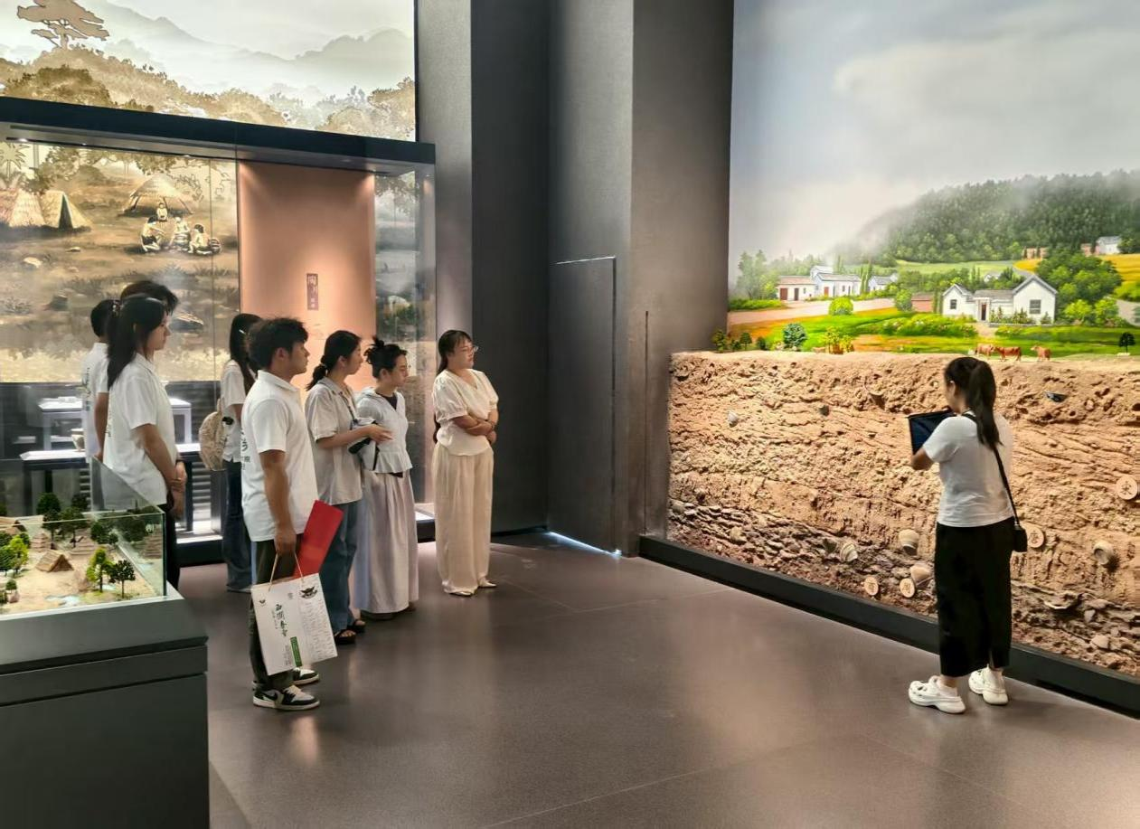 下午,实践团队前往天长市博物馆,在讲解员的引导下,大家漫步于各个展区,从承载岁月痕迹的文物,到展现地方风情的民俗展品,每一件物件都在诉说着天长地区的历史变迁与文化积淀。团队成员一边认真聆听讲解,一边结合上午的非遗体验经历,不时的交流对地方文化传承与发展的思考。团队成员不仅近距离感受了非遗的匠心之美,更深化了对地方历史文化的理解,为后续以专业能力助力乡村文化传播与产业发展打下了基础。