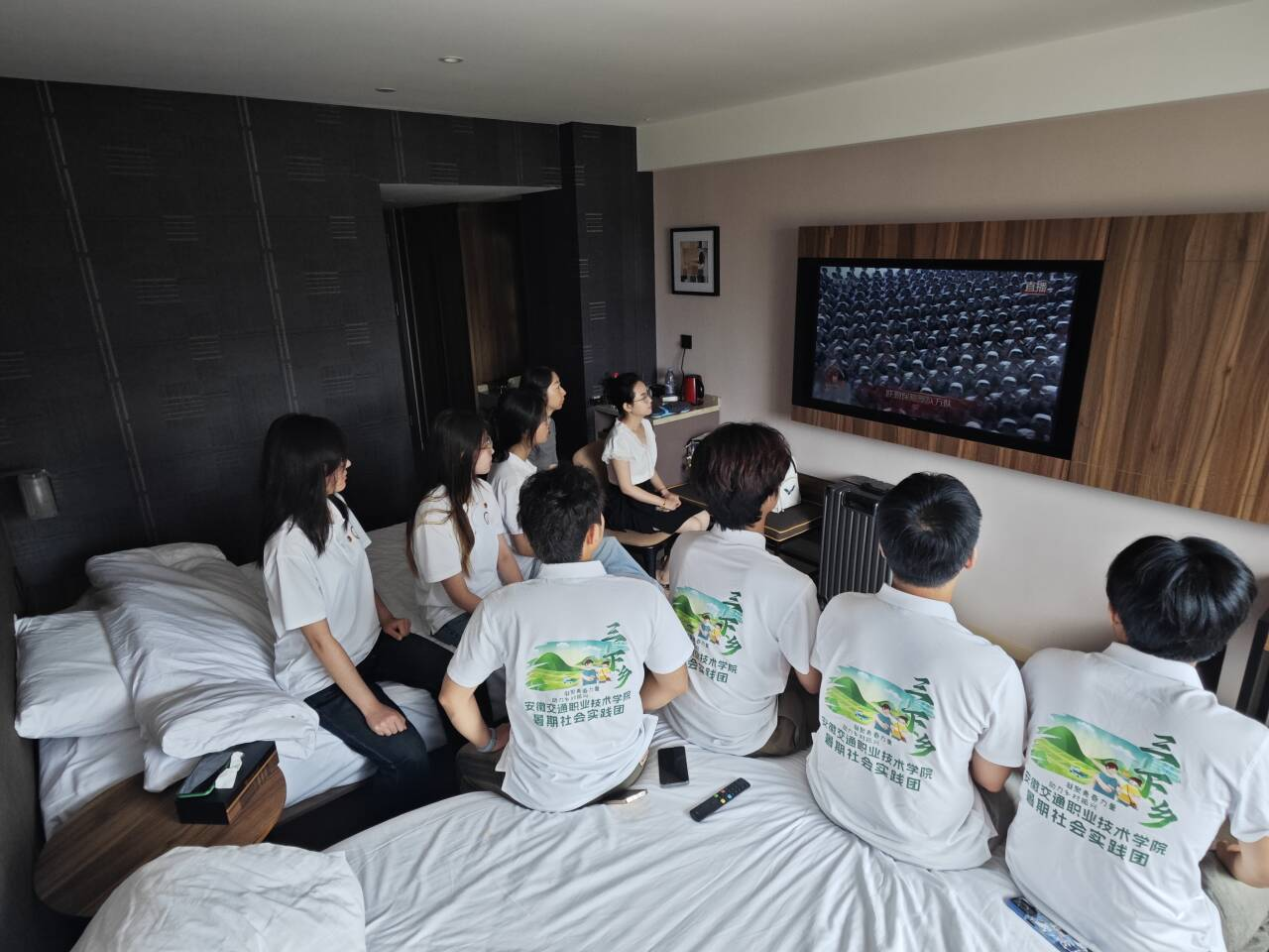 9月3日是中国人民抗日战争暨世界反法西斯战争胜利80周年纪念日。当日上午,实践团队在指导老师的带领下,在酒店共同观看了纪念中国人民抗日战争暨世界反法西斯战争胜利80周年阅兵仪式,接受了一次深刻的爱国主义教育。实践团成员纷纷表示,作为新时代青年,要从伟大抗战精神中汲取力量,肩负起时代赋予的使命,为实现中华民族伟大复兴的中国梦而努力奋斗,同时也为维护世界和平贡献自己的力量。