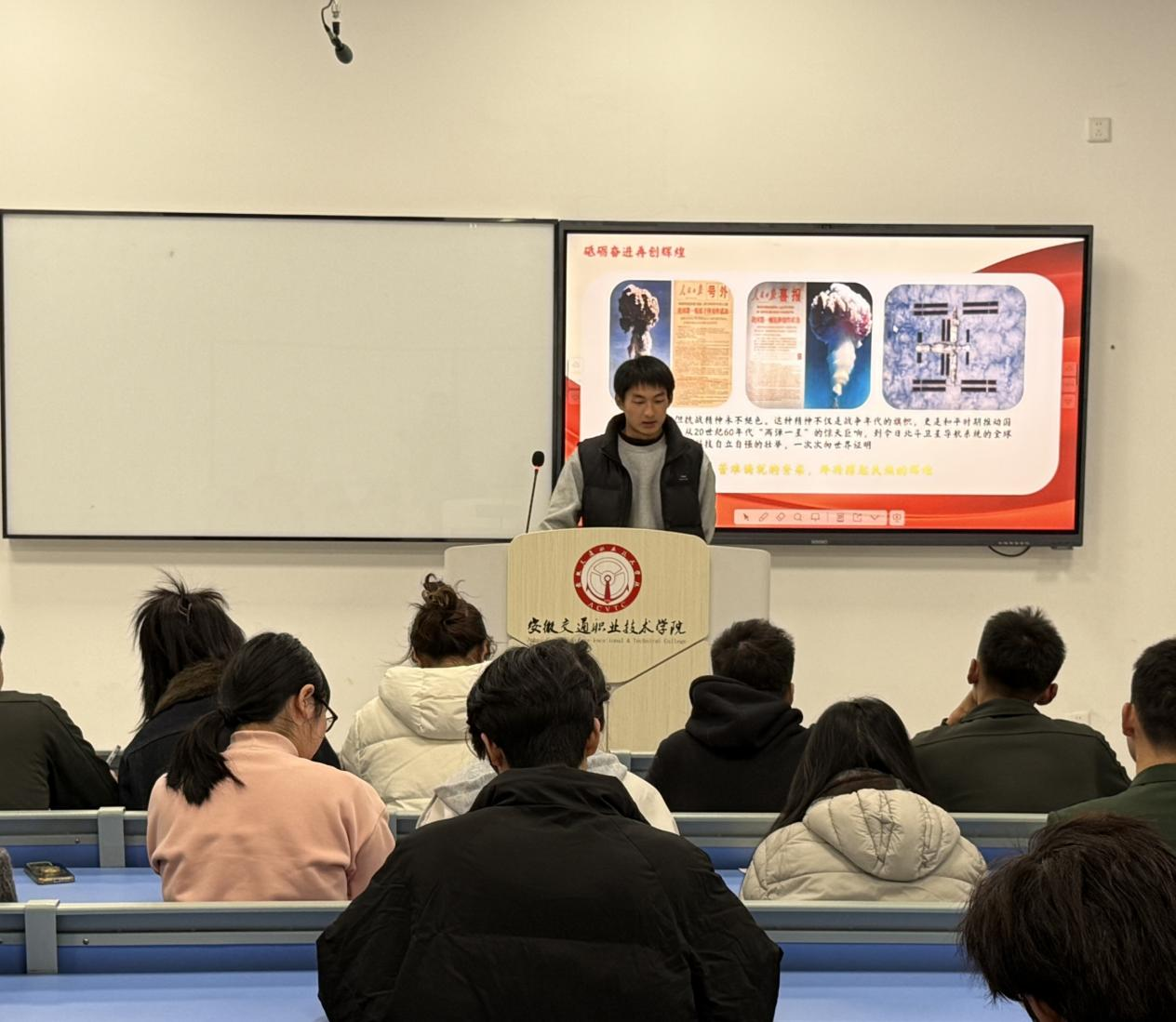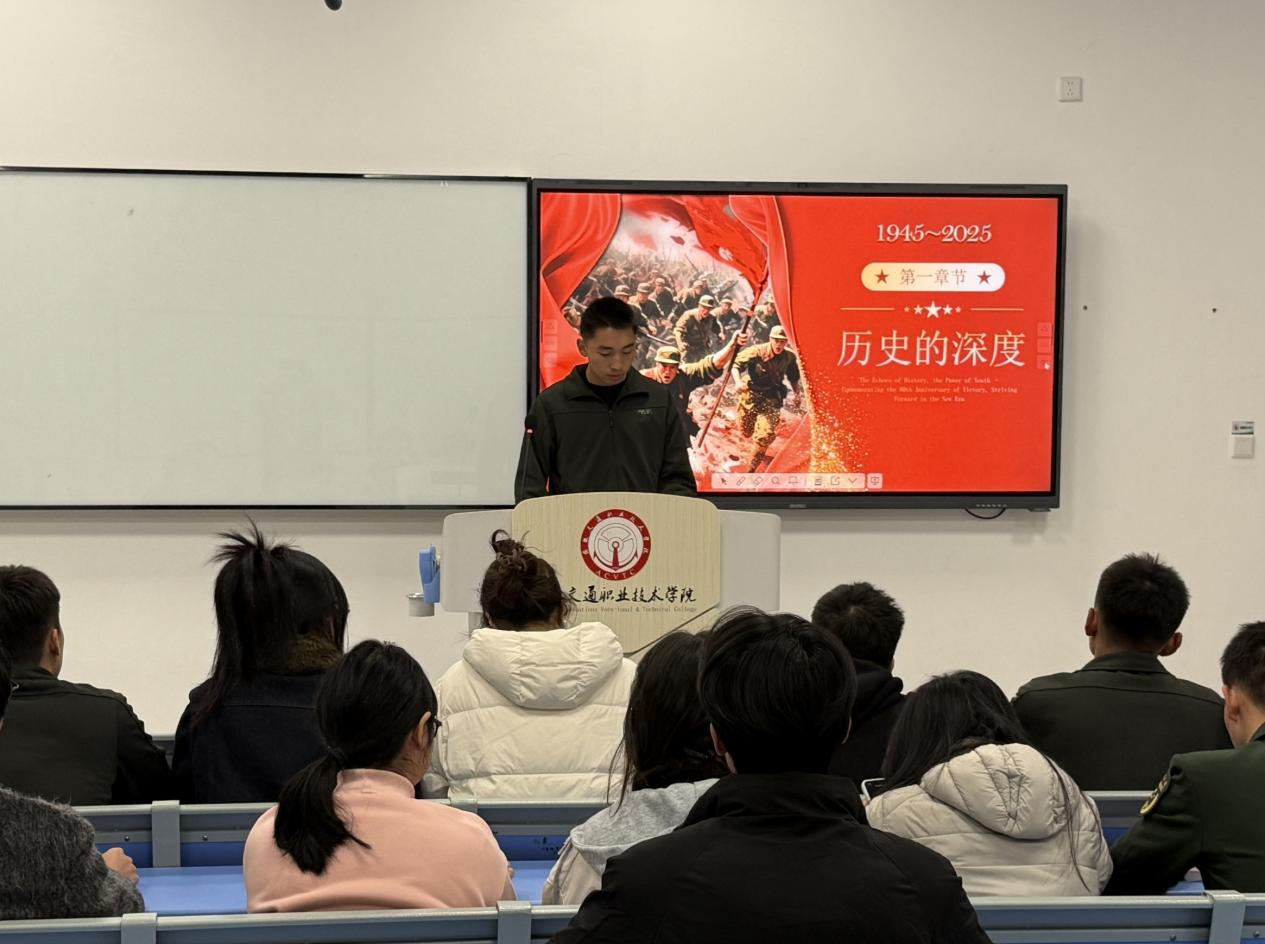 烽火岁月刻骨铭心,抗战精神永续传承。今年是纪念中国人民抗日战争暨世界反法西斯战争胜利80周年,为深切缅怀革命先烈,弘扬伟大抗战精神,航运工程学院于11月24日在尚能楼c410举办纪念中国人民抗日战争暨世界反法西斯战争胜利80周年PPT演讲大赛。活动自11月6日启动以来,同学们踊跃参与,以屏幕为媒介,将历史与现实紧密相连,呈现了一场兼具思想深度与艺术表现力的视听盛宴。