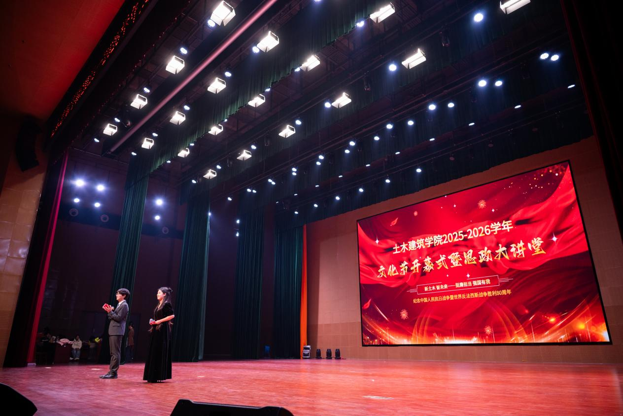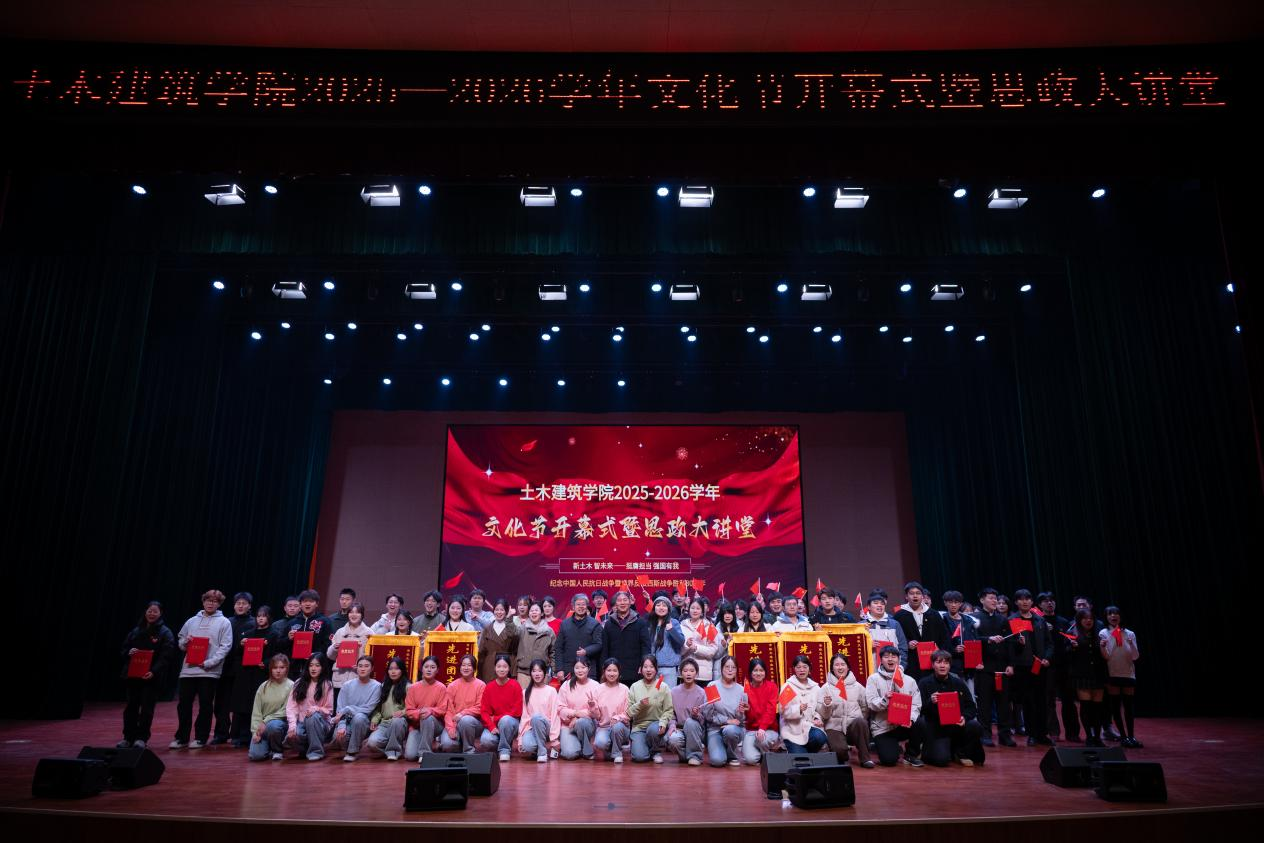 为纪念中国人民抗日战争暨世界反法西斯战争胜利80周年,强化思想引领,激励青年学子传承红色基因、挺膺时代担当,12月18日晚,土木建筑学院在经世大讲堂举办2025-2026学年 “新土木,智未来——挺膺担当,强国有我”主题文化节开幕式暨思政大讲堂。学院党总支书记邵登泰、院长王东及相关老师参加活动。