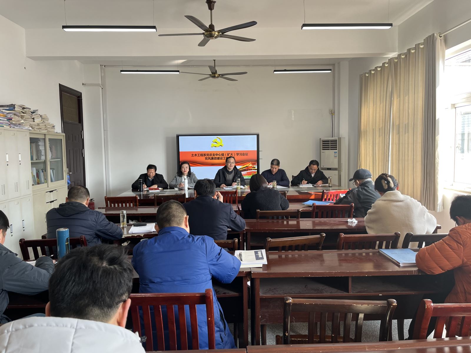2月25日下午,土木工程系党总支召开党风廉政建设工作专题中心组(扩大)学习会。系领导、副科级以上干部、各支部书记参会。