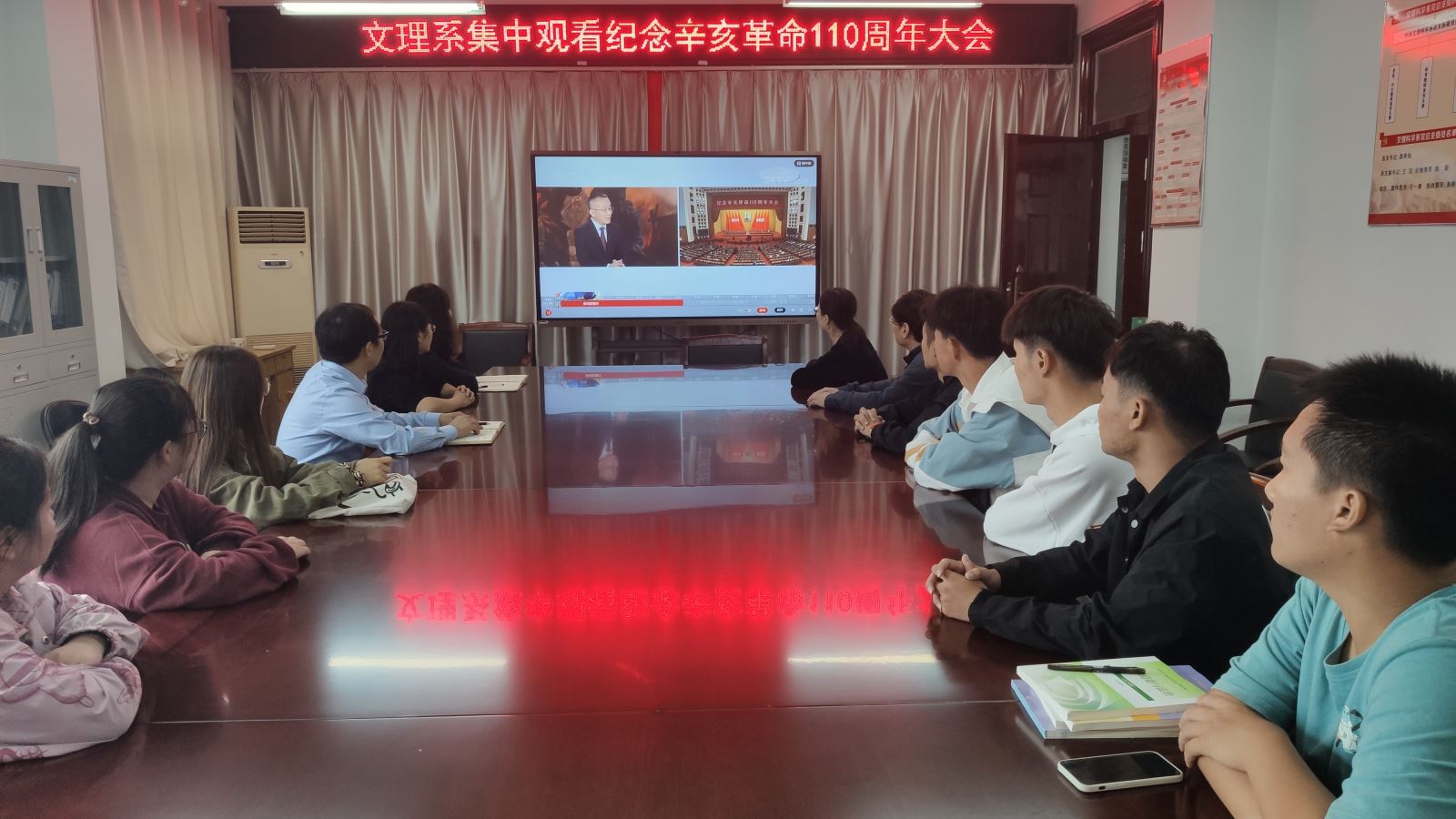 10月9日上午,文理系党总支副书记、系副主任(全面主持工作)昌希灿,系党总支副书记、副主任王珏与师生共同观看辛亥革命110周年纪念大会,深切缅怀孙中山先生等辛亥革命先驱的历史功勋,会后围绕习近平总书记重要讲话精神,进行座谈交流。