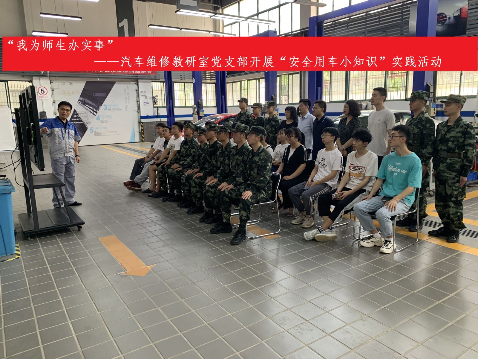 为扎实深入开展好党史学习教育,切实为师生办实事做好事,6月9日下午,汽车维修教研室党支部在汽机系实训楼开展“安全用车小知识”实践活动,汽机系部分师生参加了本次活动。