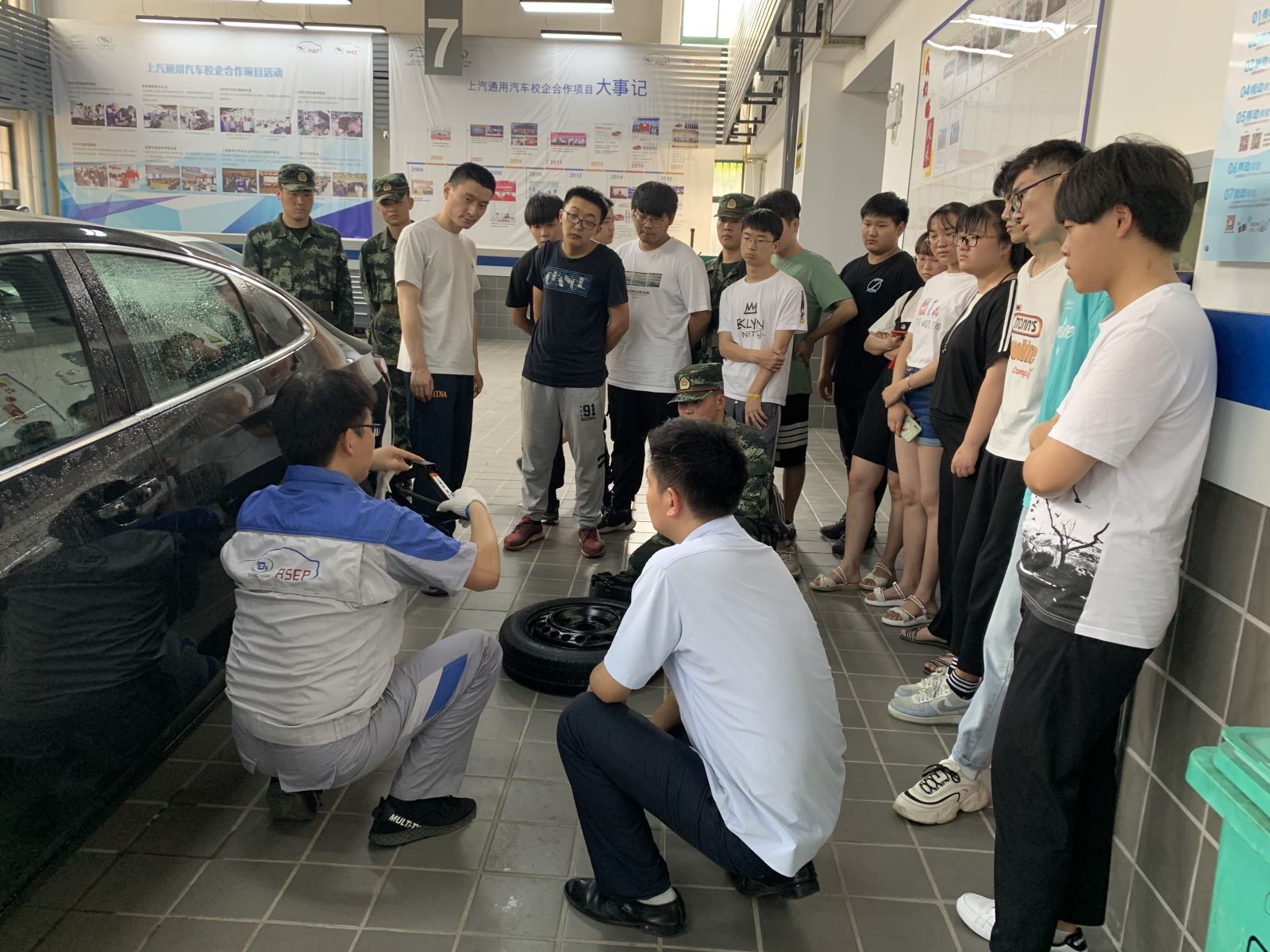 本次活动从安全用车的视角介绍了安全用车的注意事项,展示了汽车仪表故障指示灯、汽车空调在不同天气和道路条件下功能选择、雨天行程注意事项和轮胎故障时应急换胎操作,通过理论讲解和现场示范操作,使广大师生对安全用车知识有了全面的了解,并通过现场操作练习掌握了雨天行车车窗防雾方法和应急更换备胎具体操作。