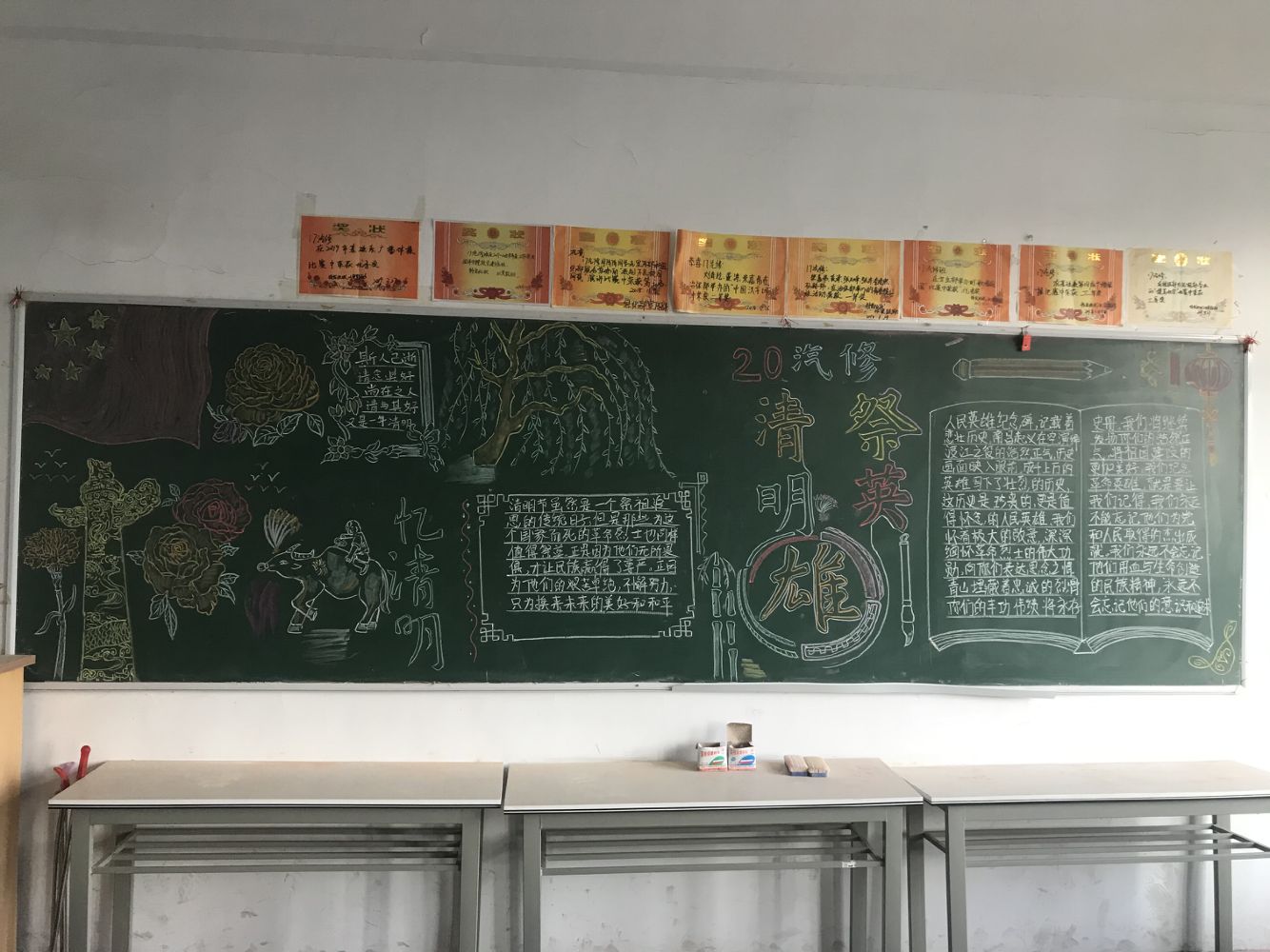 同时根据班会讨论学习情况,各班出版了以“缅怀先烈 致敬英雄 清明祭英烈”为主题的黑板报,以总结学习成果,加深学习记忆。