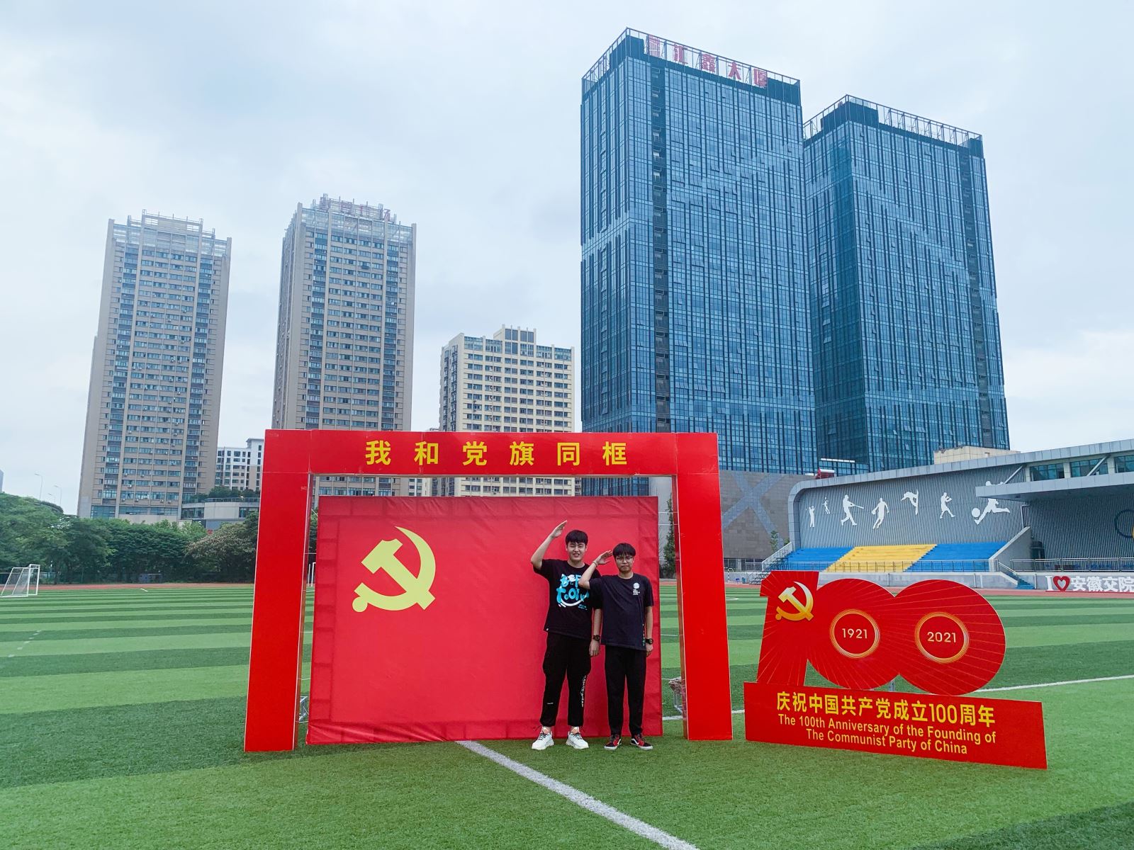 活动最后,学生党支部老师带领学生开展“我和党旗同框合影”,同学们多角度,多视角,多层次用镜头记录对建党100周年的祝愿,感悟初心使命,坚定奋斗决心。(土木系 武庆媛)