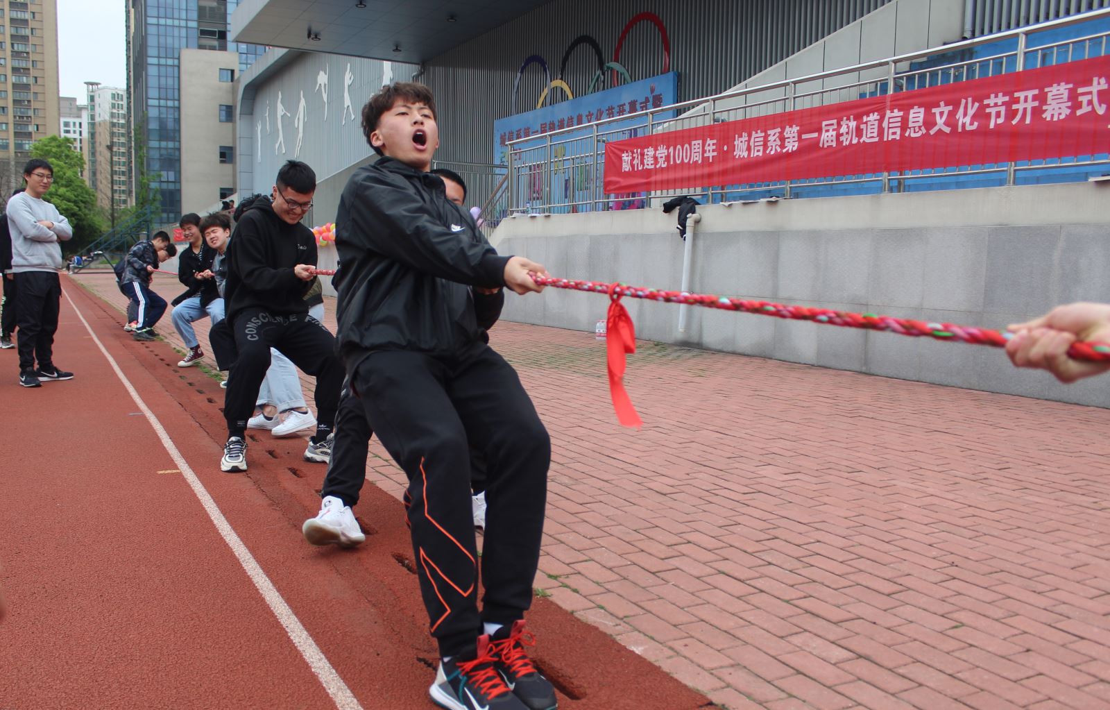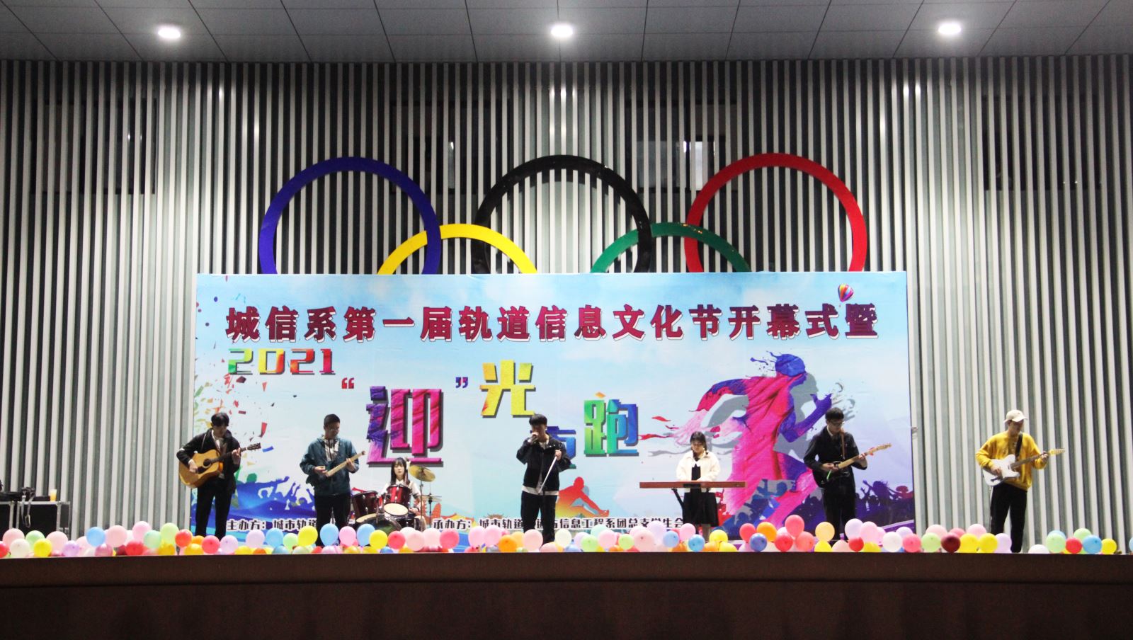 献礼建党,见证成长。4月14日晚,由城信系主办,系团总支学生会承办,院广播台协办的献礼建党100周年——第一届轨道信息文化节开幕式暨2021“迎”光夜跑在北区操场举行。副院长王丰胜,学生处处长喻谨,城信系主任李锐,城信系党总支书记汪倩、副书记承友明及部分教师和数百名城信系学子共同参加了这次活动。