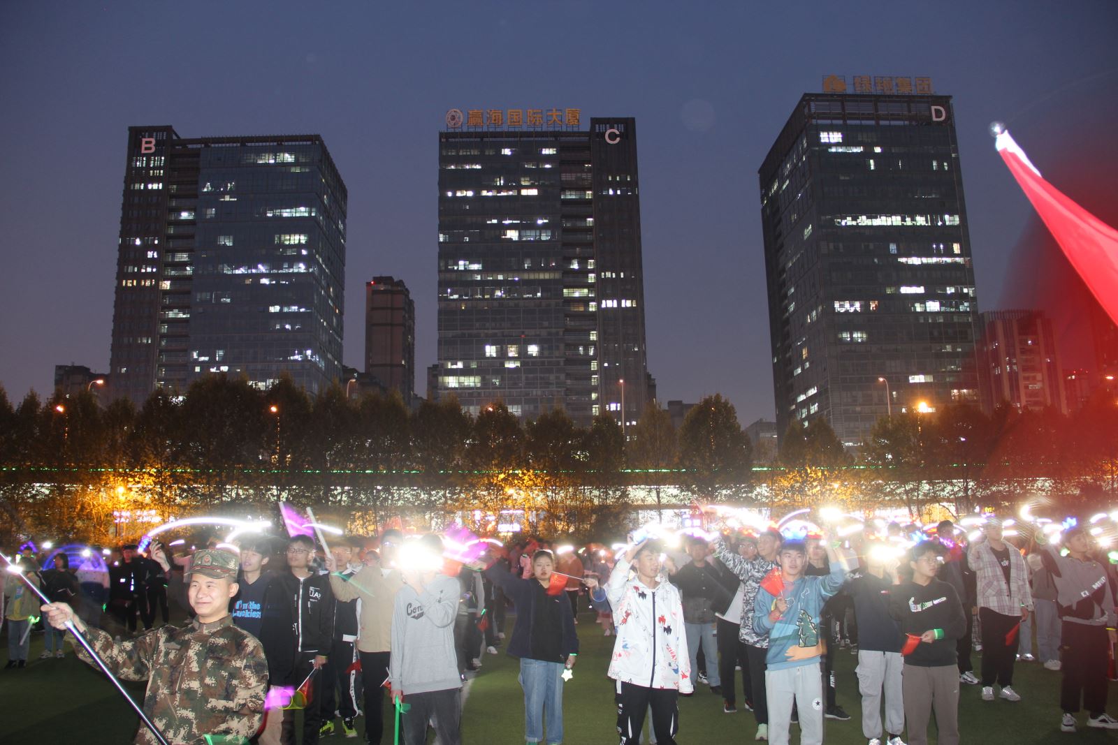 建党百年,红星照耀,恰是百年风华!我们是党百年目标的见证者,是国百年目标的亲历者。活动开始,伴随着“我爱你中国”的主旋律,同学们手舞国旗,挥动荧光棒,组成“100”字样,以城信人独特的方式庆祝中国共产党建党100周年。同学们载歌载舞,迅速点燃了全场师生的激情。