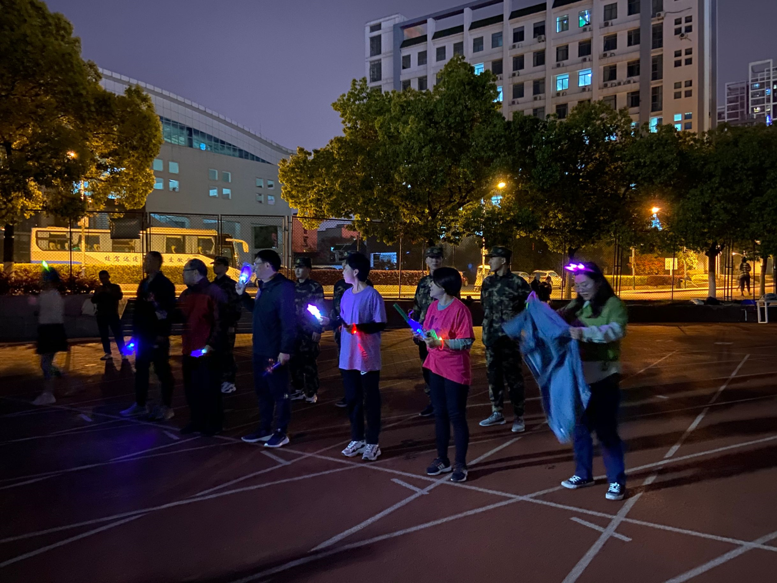 院系领导亲自领跑,将承载着青春、活力、无畏、拼搏的接力棒交接给青年学生,让他们用自己坚实的步伐继续恣意青春,激情奔跑。他们“走出宿舍,走下网络、走向操场”,化身荧光精灵,汇成一条耀眼的银河,把整个操场装点成一个荧光闪耀的欢乐海洋,涌动的同学在跑道上形成了一道亮丽的风景线。