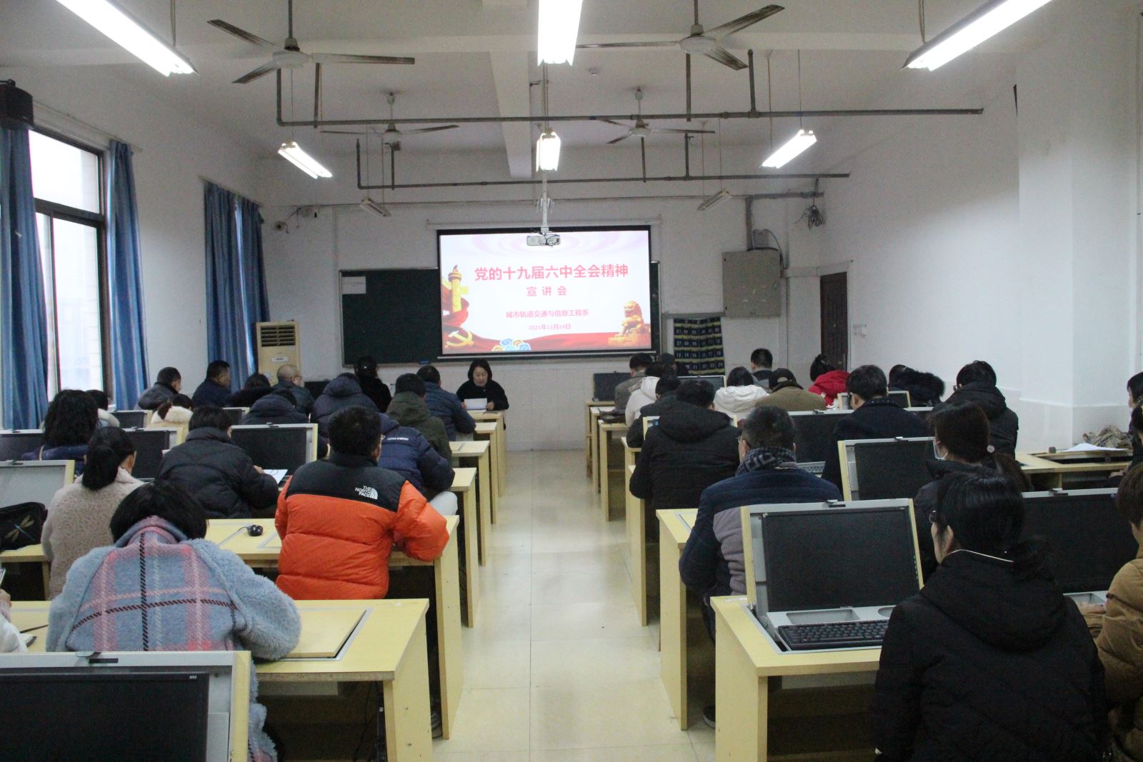 为深入学习贯彻党的十九届六中全会精神,引导广大教师在学思践悟中坚定理想信念,12月24日下午,城信系在信息楼405机房召开党的十九届六中全会精神宣讲会,全体教职工参加会议。
