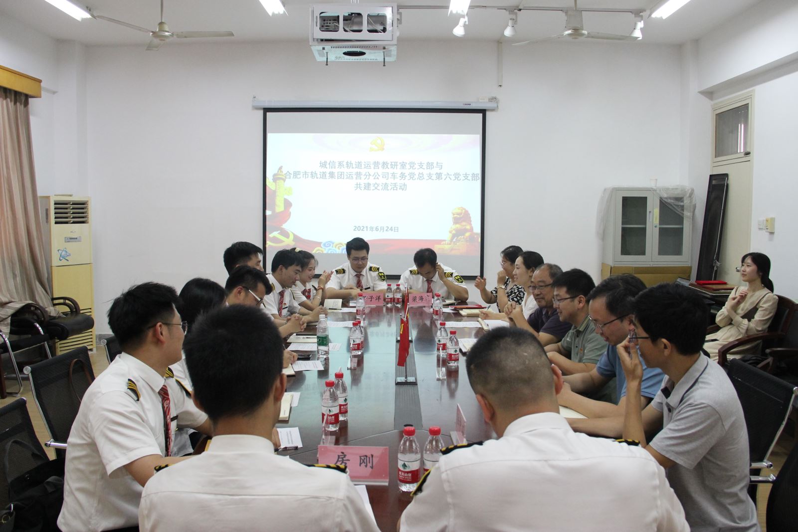 为庆祝中国共产党成立100周年,深入推进党史学习教育,大力推进“产学研”融合发展,进一步探索高校与企业党组织党建新模式,6月23日至24日,城信系轨道运营教研室党支部与合肥市轨道交通集团有限公司运营分公司车务党总支第六党支部开展支部共建交流活动。系党总支书记汪倩、系主任李锐、轨道运营教研室党支部书记李志成、支委李艳艳及部分党员老师、合肥轨道交通集团有限公司运营公司乘务三中心主任韩露、车务党总支第六党支部书记钱亚楠等人参加活动。
