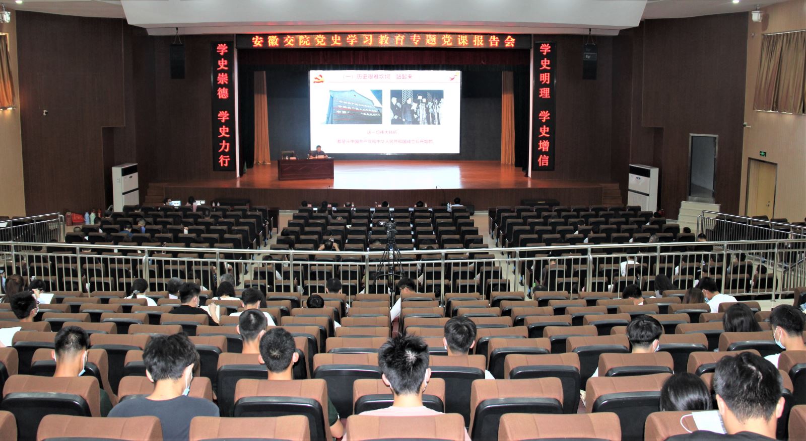 学党史如何学出坚强党性?新常态如何抓住新机遇?开新局如何实现新发展?6月23日下午,党委副书记、院长张国栋以“学党史 开新局 促育人——学院如何抓机遇、迎挑战、谋发展”为主题,在南区大礼堂为全校党员师生上党课。党课报告会由党委书记孙顺利主持。院领导陈明、王丰胜、李亮、朱文胜、杨先奇与500余名党员师生一起聆听了报告会。