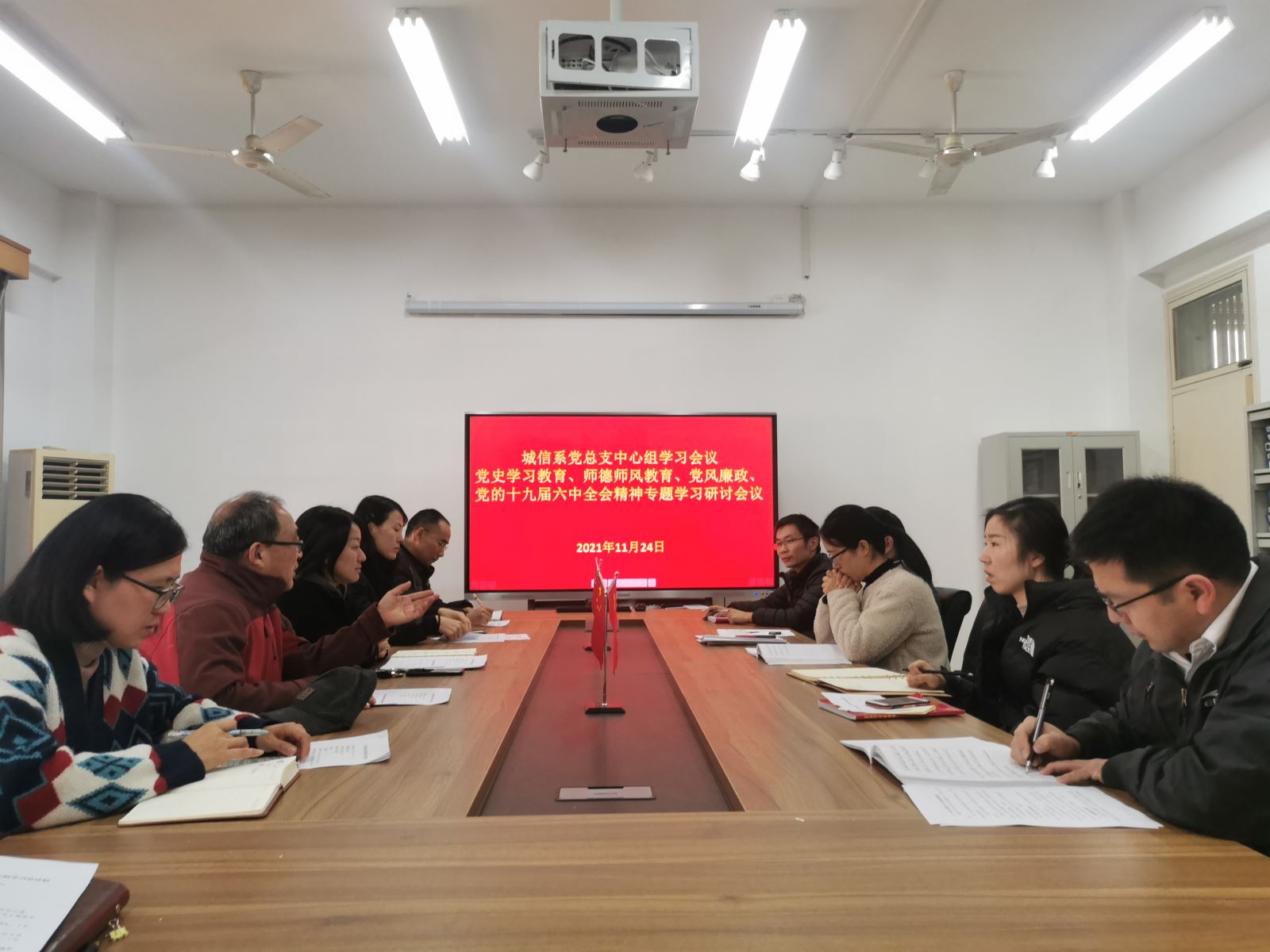 城信系党总支召开中心组学习会议暨党史学习教育、师德师风教育、党风廉政建设、党的十九届六中全会精神专题学习研讨会议