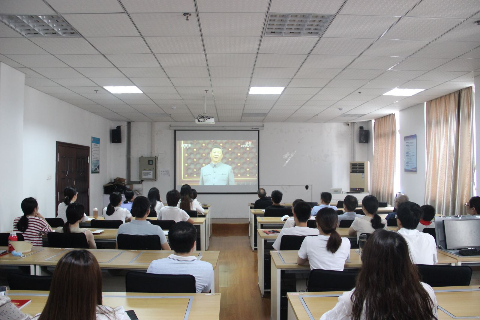 百年初心如磐,百年使命在肩。7月1日上午,根据学院党委统一部署,城信系党总支组织全系党员在信息楼301机房集中观看庆祝中国共产党成立100周年大会,认真聆听习近平总书记的重要讲话。