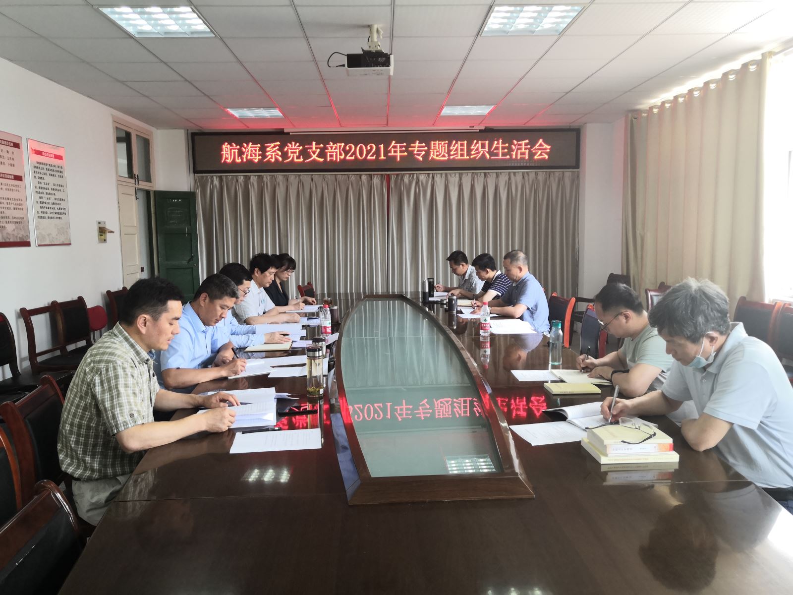 根据院党委统一部署,6月2日下午,航海系党支部召开了2021年度专题组织生活会,院副院长朱文胜参加会议并进行了指导,系副主任(主持工作)王东主持会议,系全体党员参会。