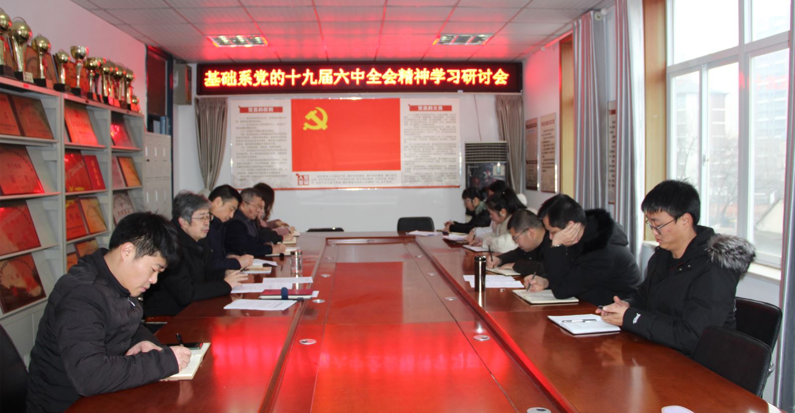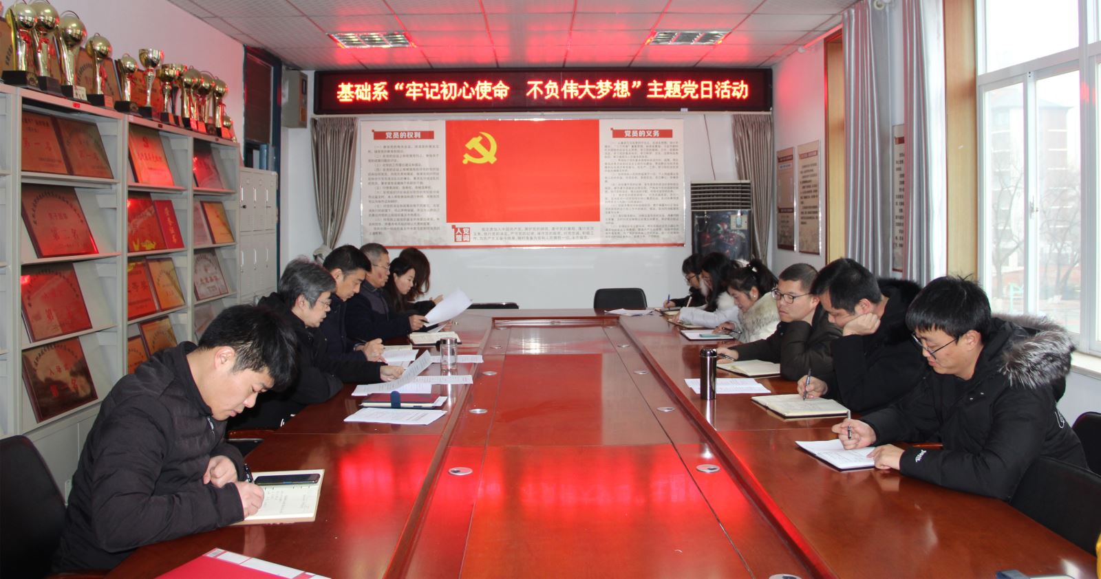 为深入学习贯彻十九届六中全会精神、省第十一次党代会精神,1月7日上午,基础系召开全体党员政治理论学习会暨“牢记初心使命 不负伟大梦想”主题党日活动。系党总支书记邵登泰主持会议,全体党员参加。