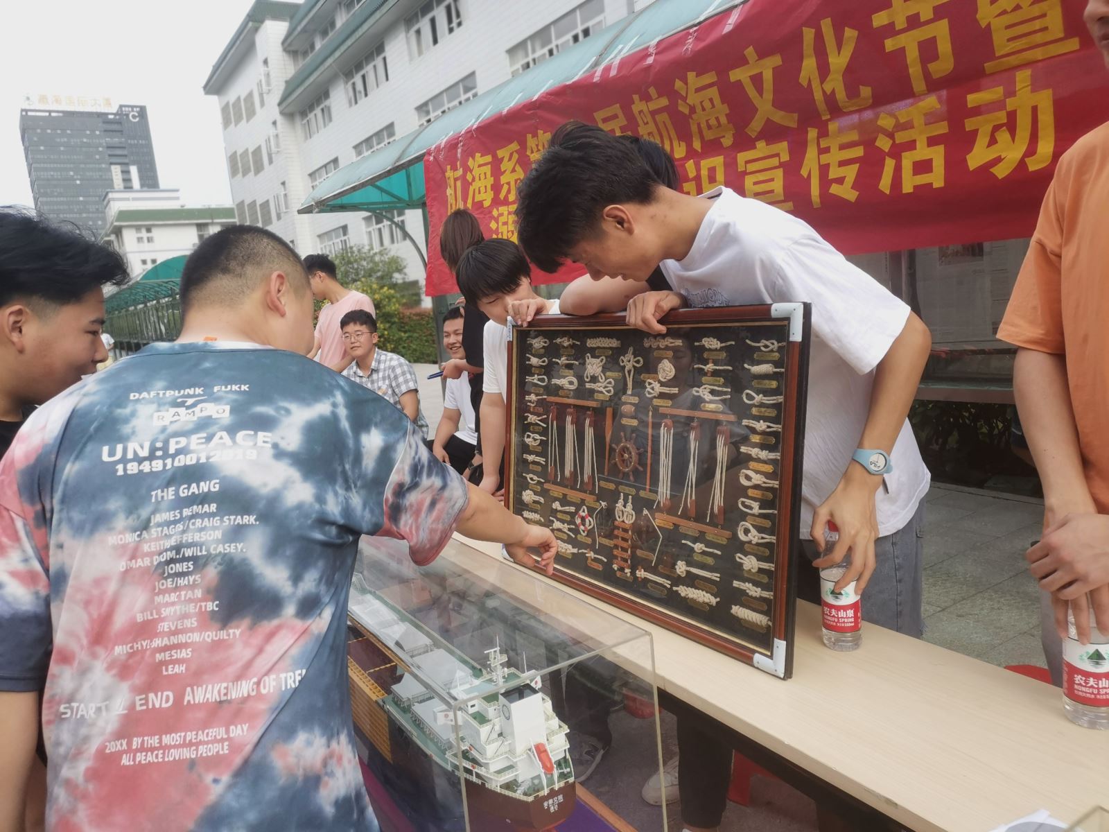 5月下旬航海系举办了航海船模展活动,将船模、锚、舵轮等搬到户外让全校师生共同欣赏,路过的师生们兴趣浓厚,纷纷驻留观赏。航海系学生运用自身所学专业知识,热心地向大家普及船舶知识。