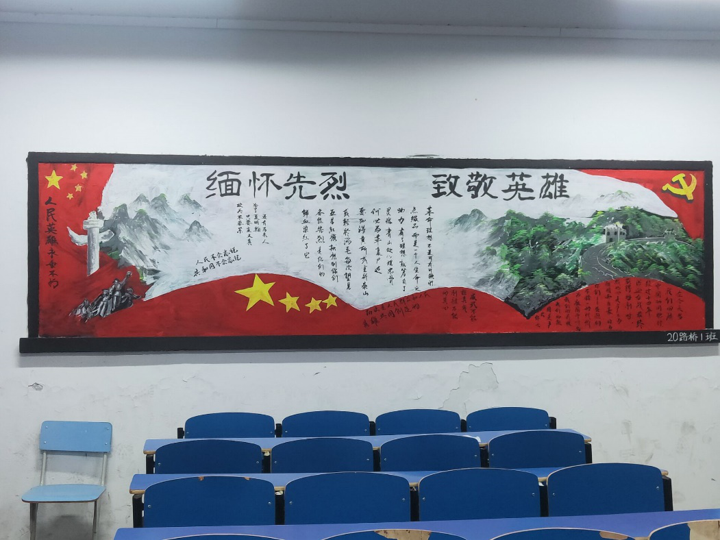 为传承红色基因,用革命先烈的不朽功绩来加强青少年的爱国主义教育,土木系开展主题黑板报绘制评选活动,由土木系学习部负责评比,推选出优秀主题板报。最终20路桥1班、19检测1班和19检测3班、20路桥5班、20造价1班等班级主题黑板报获得优秀。