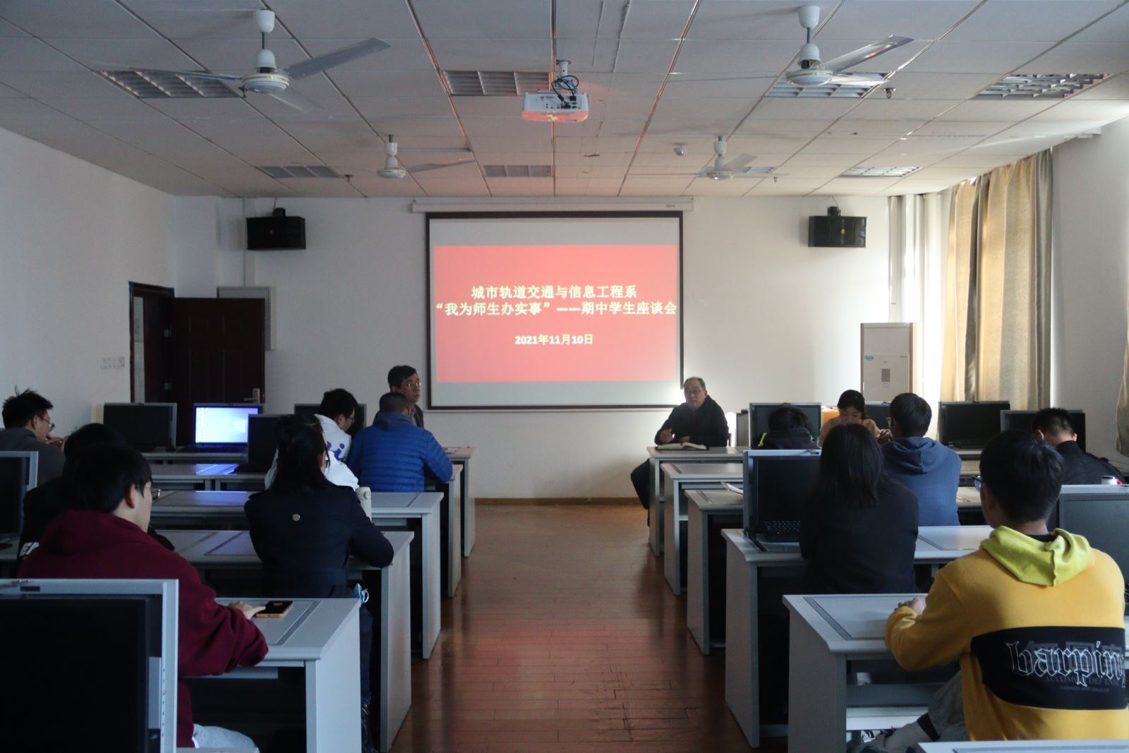 为深入开展“我为师生办实事”实践活动,听取全系师生对城信系发展的意见建议,了解师生在工作、学习和生活中的困难问题,11月10日下午,城信系在信息楼302机房召开“我为师生办实事”期中教师、学生座谈会。系主任李锐、系副主任娄智、全系教师以及2020级、2021级学生代表参加。会议由系主任李锐主持。