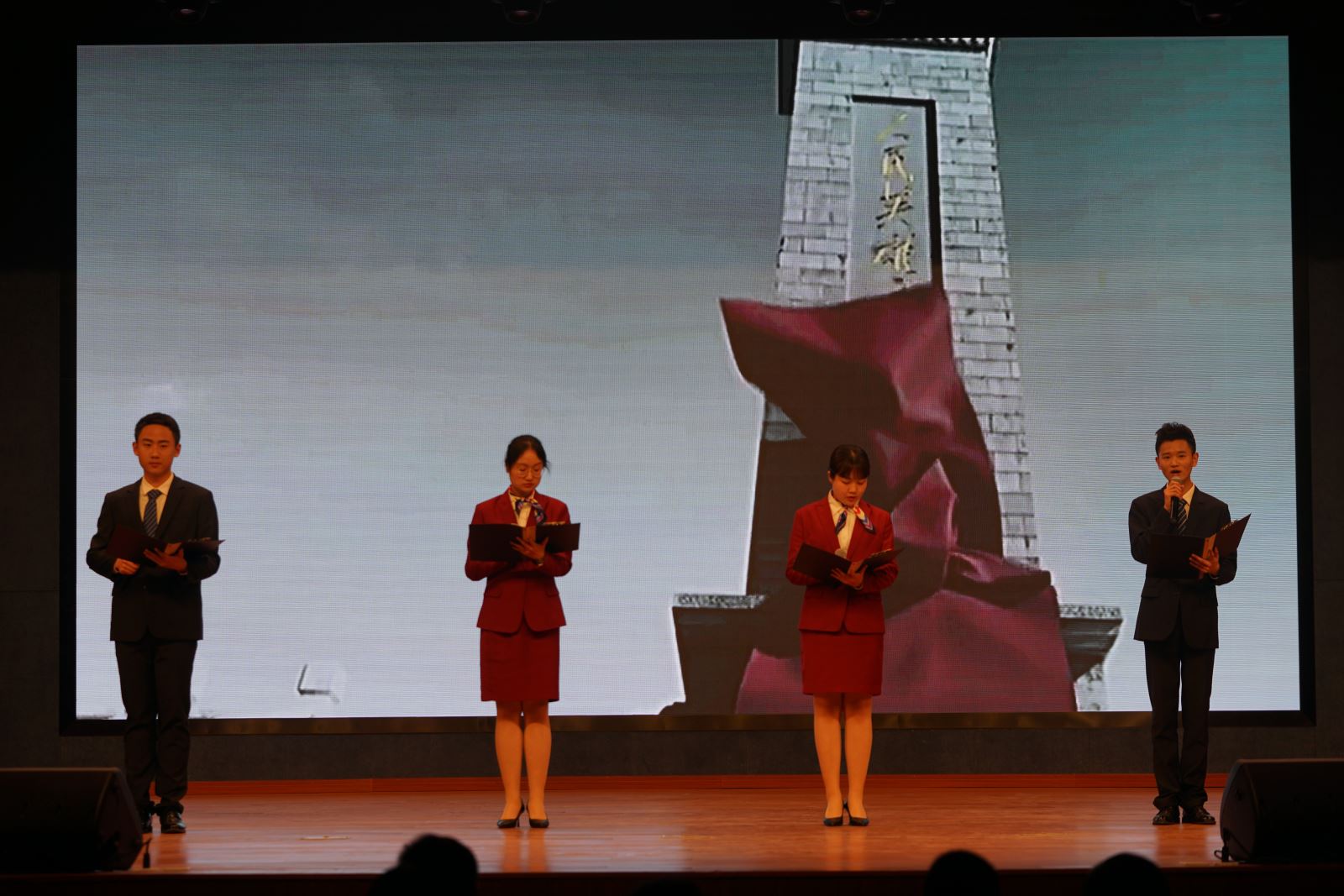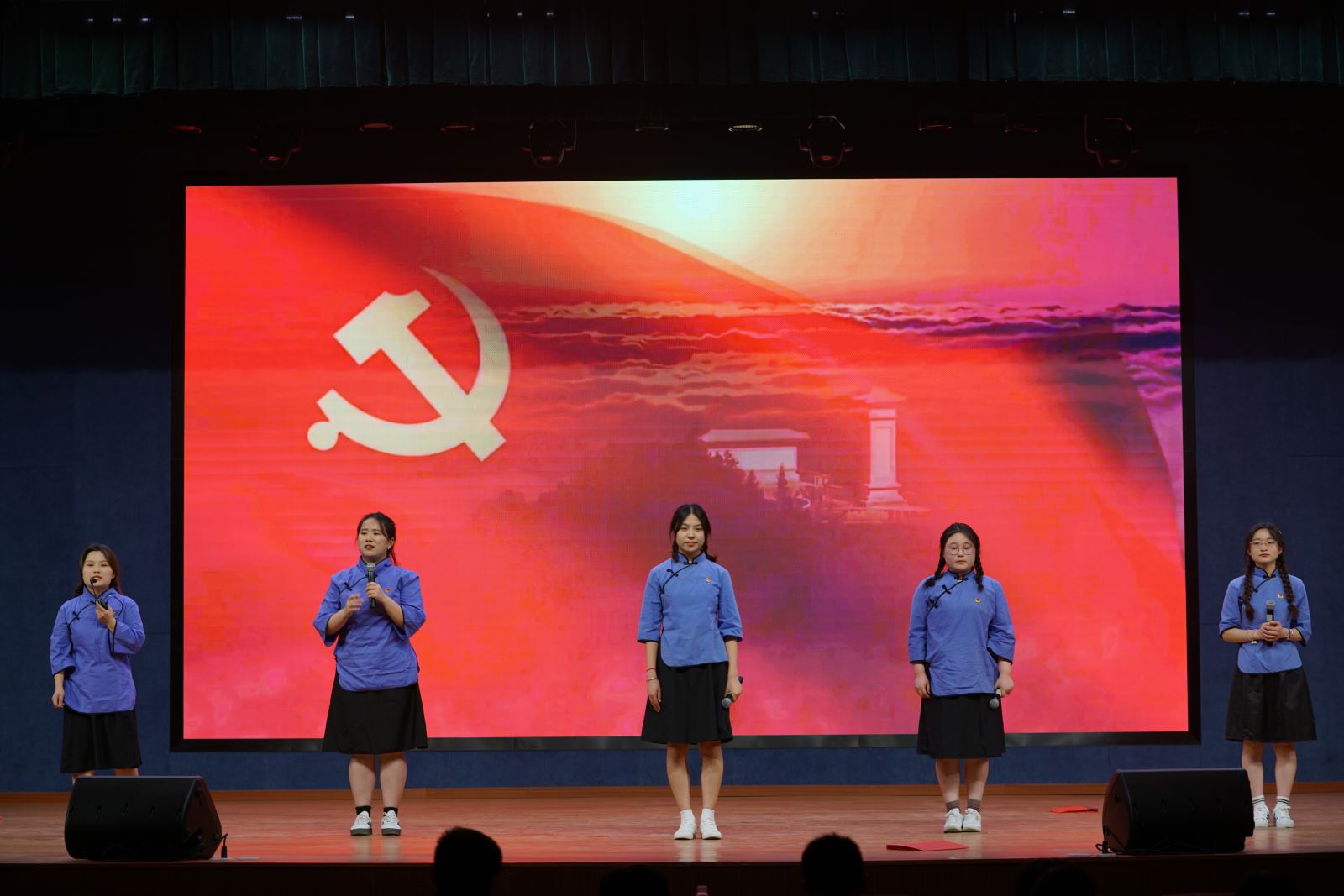 比赛现场,来自学院各系的参赛选手用慷慨激昂、精神饱满的朗诵,倾诉着对中国共产党的热爱之情,通过背景音乐、视频、舞蹈等丰富的形式为大家诵读了红色经典诗词、散文佳作。来自城信系的四位同学通过作品《党的礼赞》为党一百岁献礼,展示中国共产党从诞生到现在走过的百年光辉历程;土木系本科班的五位同学,通过舞蹈与诵读的结合向我们展现了不一样的《亲爱的祖国》;汽机系士官班同学们的作品《鲜红的党旗》为我们表达了只要共产党人不懈努力,这面旗帜就可以所向披靡的信心。选手们出色的表现赢得了在场观众及评委的热烈掌声。活动中,参加省交通运输厅诵读比赛荣获一、二等奖的学生团队,展演了《红岩魂》与《青春中国》两部作品。