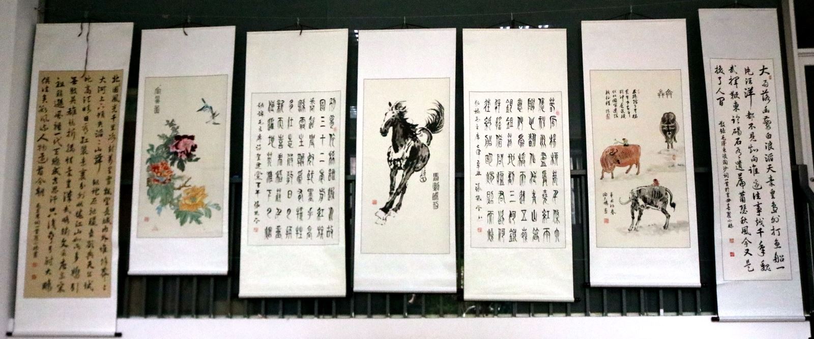 本次活动展示了老干科教职工们美妙绝伦的字画,一笔一画之间无不透露着中国传统文化的博大精深,和对建党一百周年献礼的真挚感情:一幅“马到成功”的水墨画表达了在党的领导下新中国不断走向新的胜利的美好寓意;一幅“修竹图”则体现出我们党如竹石一般“咬定青山不放松”的韧劲;而传神的“俯首甘为孺子牛”更是表达出共产党人始终发扬孺子牛、拓荒牛的精神,踏入推进国家现代化建设的新征程。无论是“党的生日齐欢颂”,还是“欲穷千里目,更上一层楼”,亦或是“党旗为岁月增辉,红星为大地闪耀”,这铿锵有力的笔触都是对新中国、对中国共产党最好的礼赞。