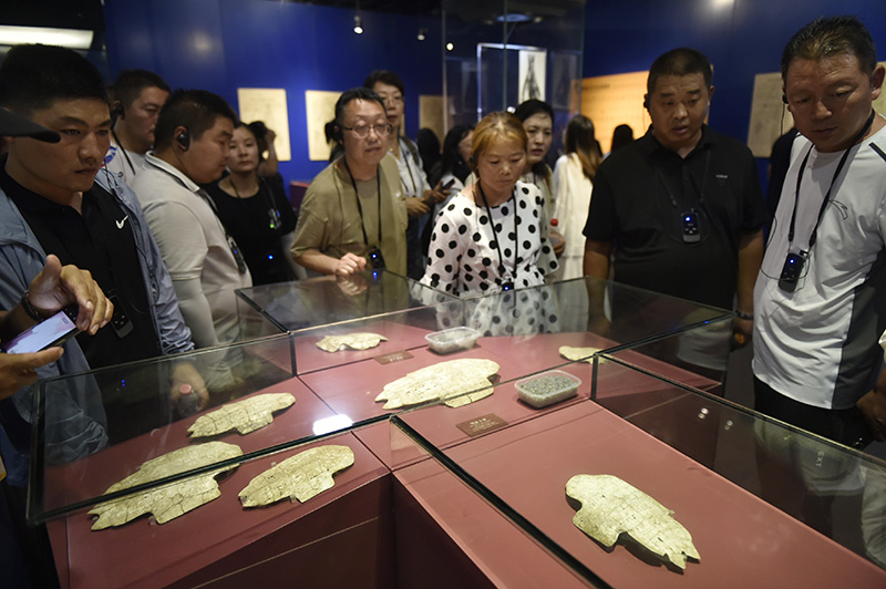 2023年8月10日,观众在河南省安阳市的殷墟博物馆参观。新华社记者 鲁鹏 摄