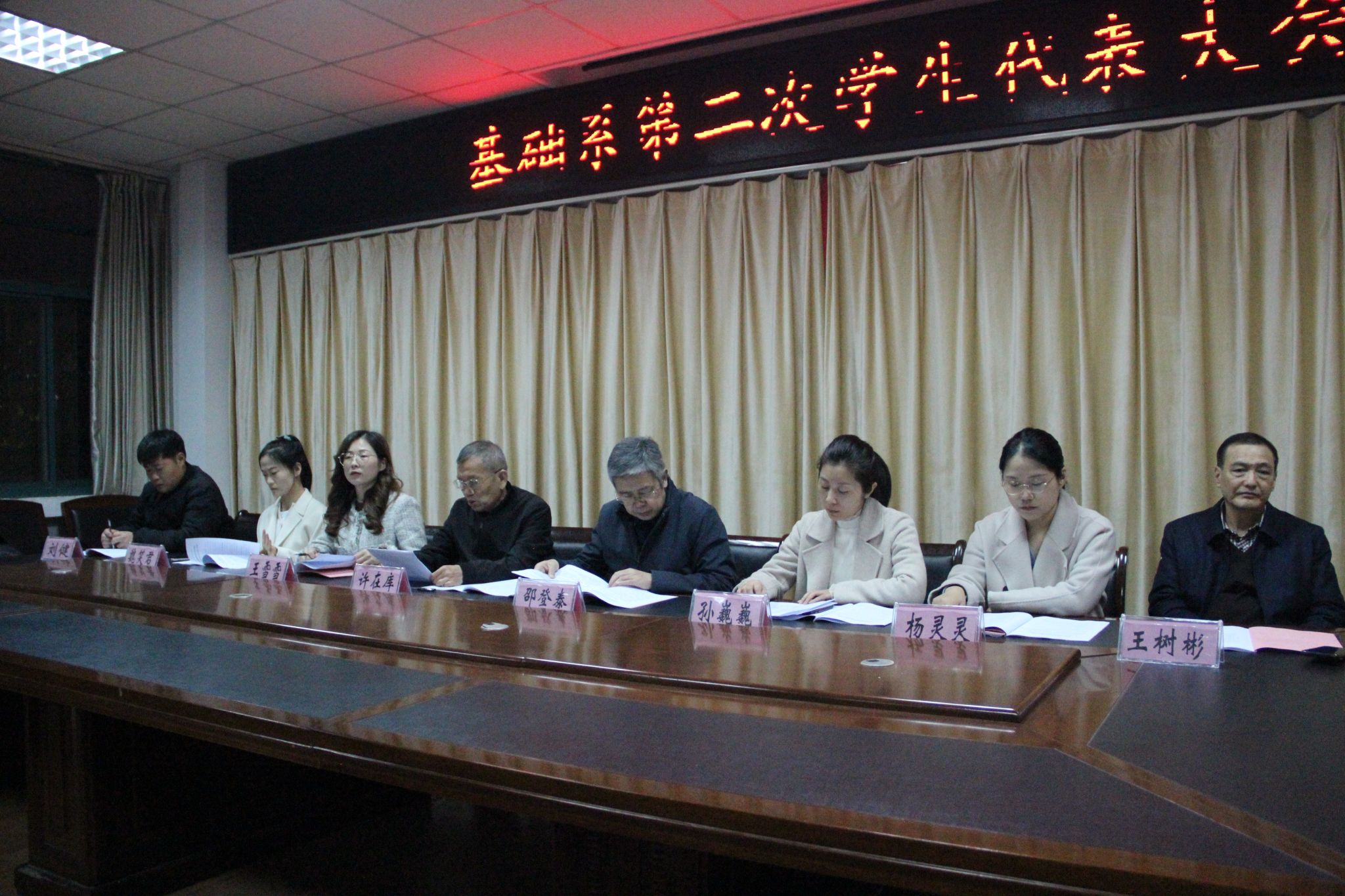11月29日,基础系第二次学生代表大会在南区教学楼会议室胜利召开。基础系党总支书记邵登泰、系副主任许在库、系党总支副书记孙巍巍、学生管理老师出席会议。系学生会主要负责人、正式代表、列席代表共计50人,认真履职参会。
