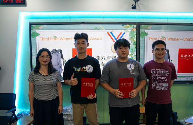 经过紧张激烈的角逐,最终评选出一等奖1组、二等奖2组、三等奖3组。颁奖环节中,人工智能学院党总支书记胡冰为一等奖团队颁奖,航运工程学院党总支副书记刘元元与人工智能学院周岩老师为二等奖获奖者颁奖,三位外教共同为三等奖获奖者颁奖。