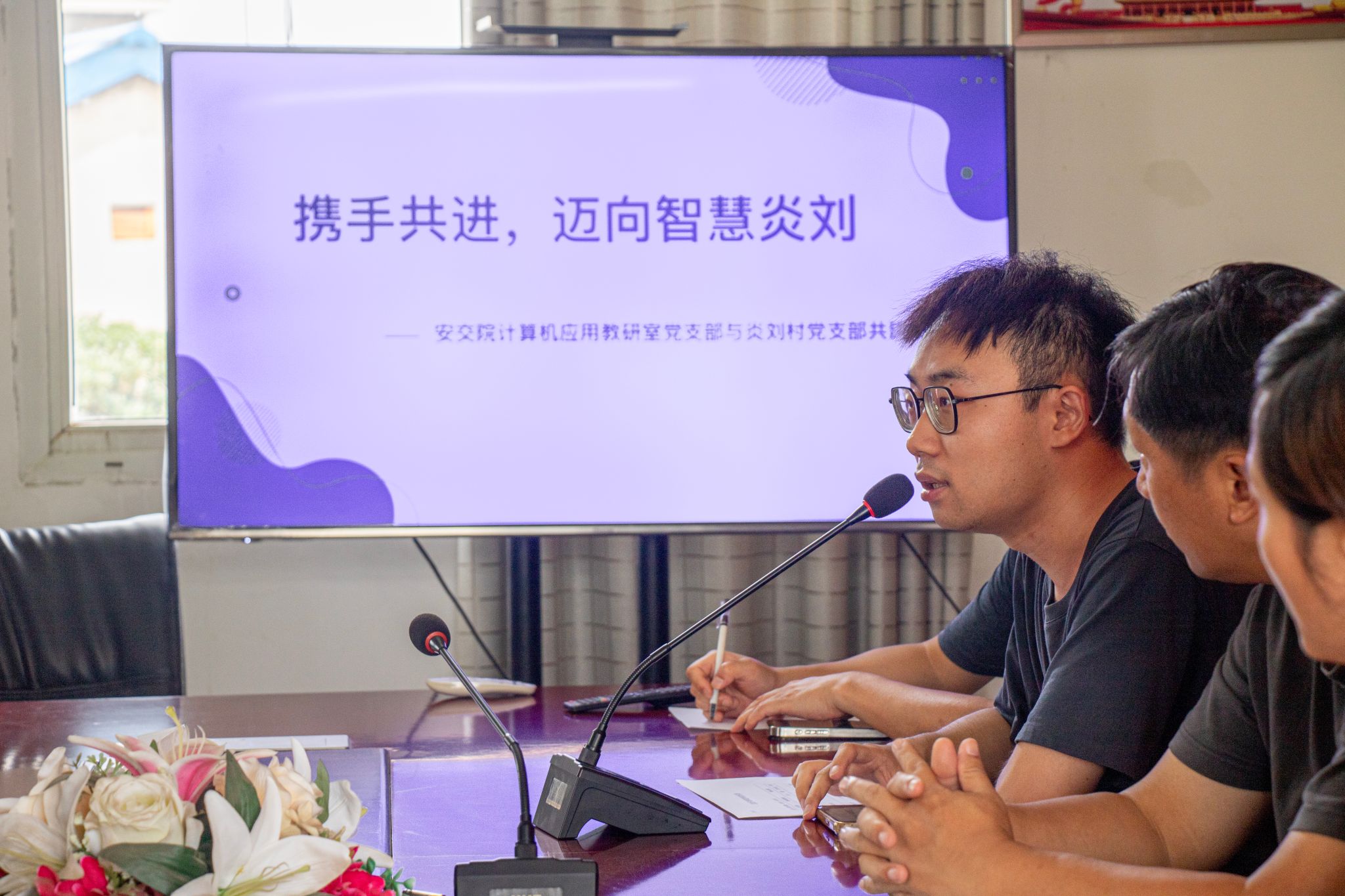 在炎刘村党群服务中心,一场以 “携手共进,迈向智慧炎刘” 为主题的党建联建座谈会热烈开展。计算机应用教研室党支部与炎刘村党总支成员围坐一堂,围绕基层党建创新、乡村智慧化建设展开交流。“党建引领聚合力,校地协同破难题”,思想的碰撞中,校地共建的路径愈发清晰,智慧炎刘的蓝图徐徐铺展。